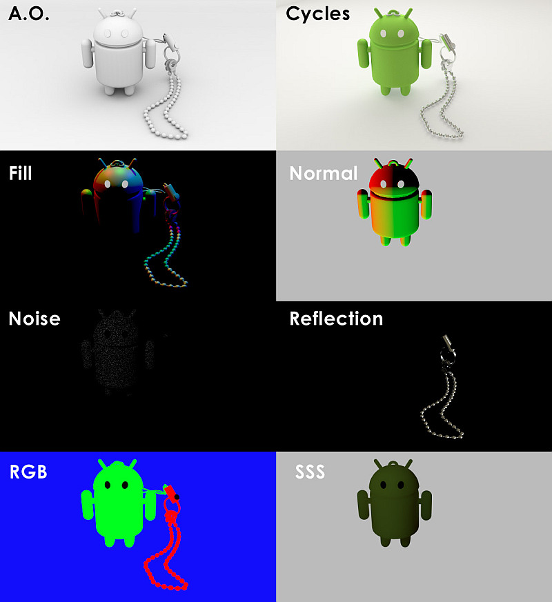 Así que, gracias al oscurart tools-overrides, tire unos cuantos passes de Blender internal para sumar al de Cycles.