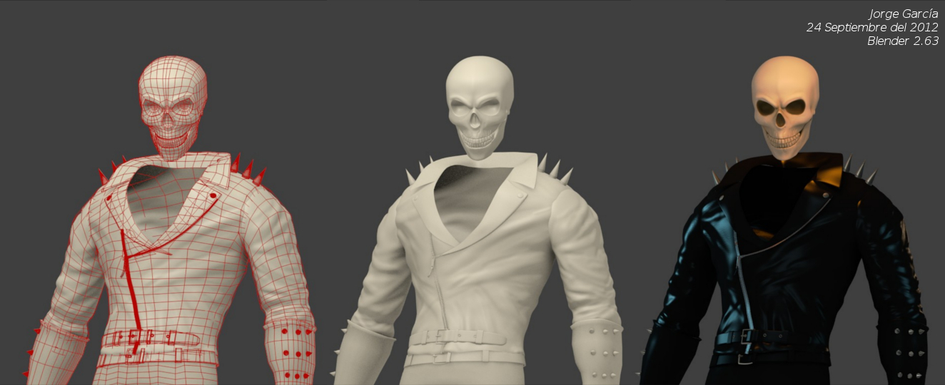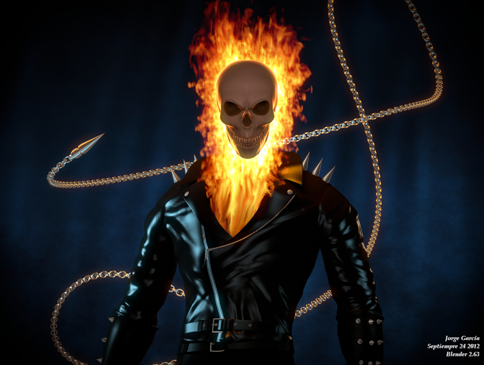 Hola gente, mi primer tema en esta comunidad, espero que sea el primero de muchos. Les dejo unas imágenes de mi más reciente trabajo, Ghost Rider, realizado en Blender 2.63.