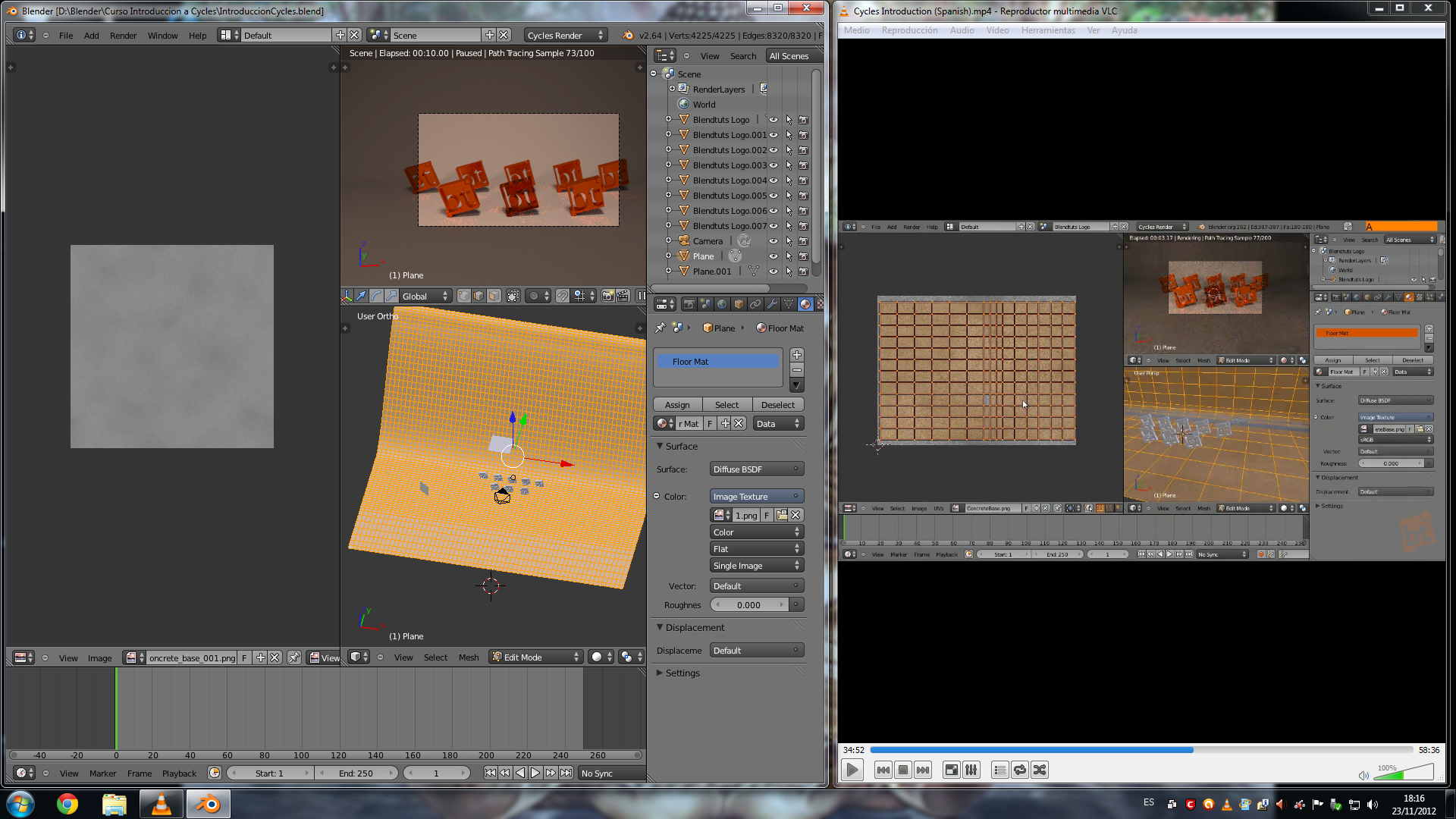 El otro día empecé un videotutorial de introducción a Cycles (http://www.blendtuts.com/cycles_intro). Creo que he seguido todos los pasos, pero al agregar la imagen al suelo y entrar en el UV editor, no me aparece la Maya para poder ajustar la imagen. Pongo una captura de pantalla en la que sale mi ventana de Blender y al lado el vídeo. Esa Maya no me aparece y sin ella no puedo ajustar la imagen como hace el. ¿Qué he hecho mal?