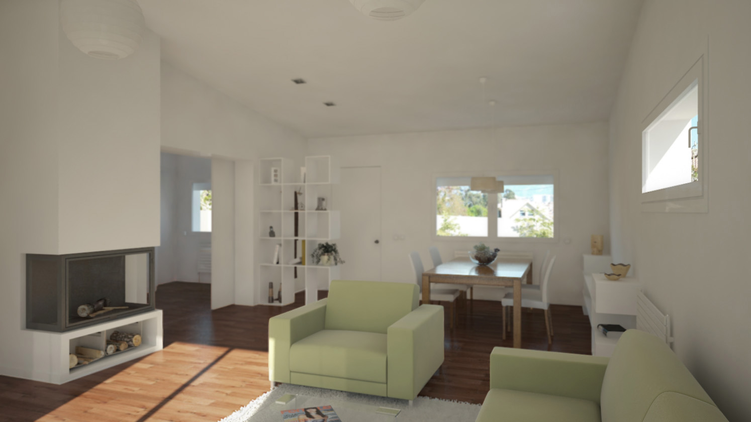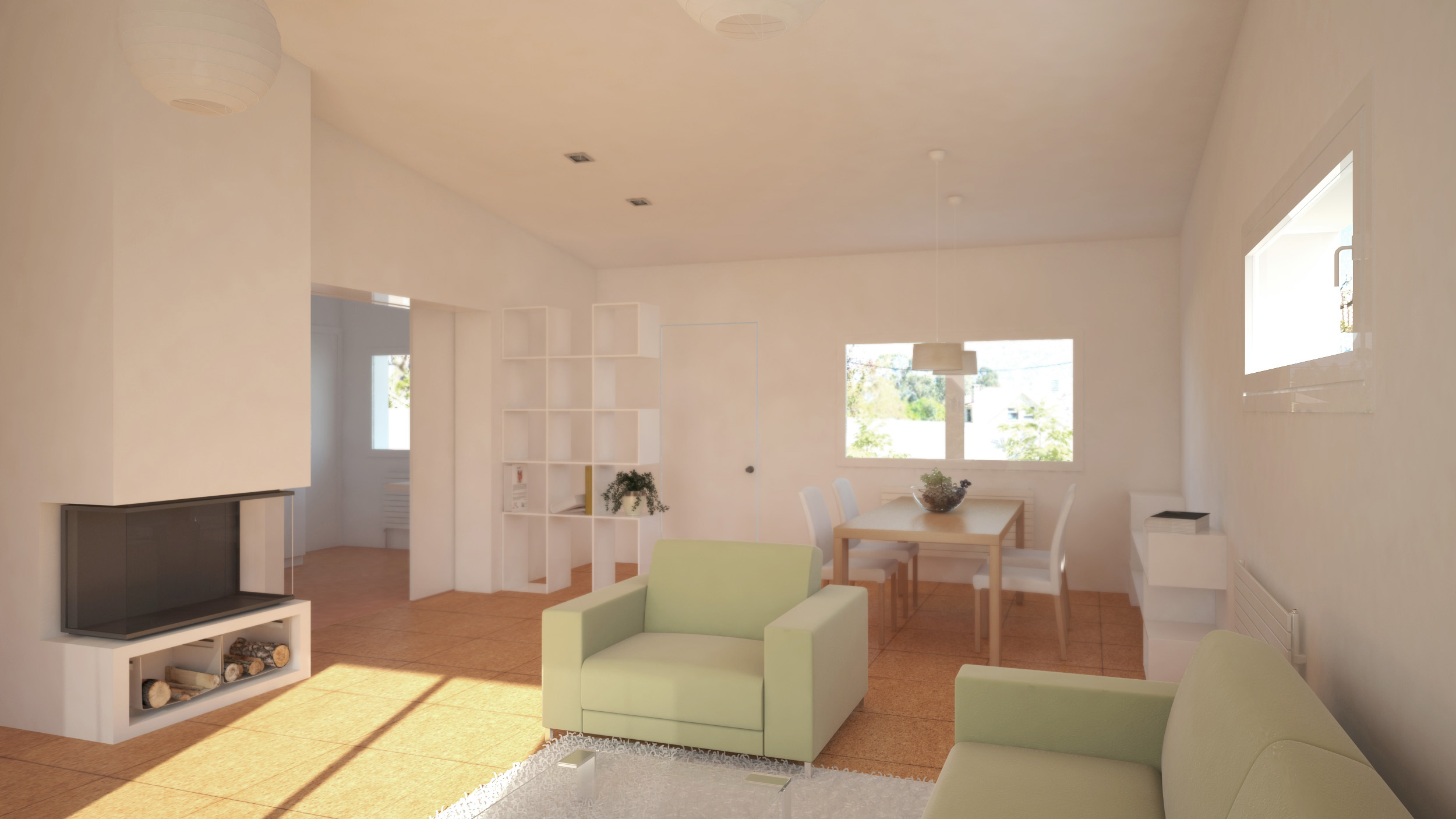 Aunque el proyecto está ya entregado en el ayuntamiento y los clientes están ya pensando más en el constructor que en el diseño quizá les proponga algunos ajustes de materiales (o más bien insista en ellos.) hice una prueba con suelo de madera para todo y me gusta bastante más (por lo menos en 3d). Es curioso, tratar de que un cliente cambie algo a pesar de estar contento con lo que tiene.