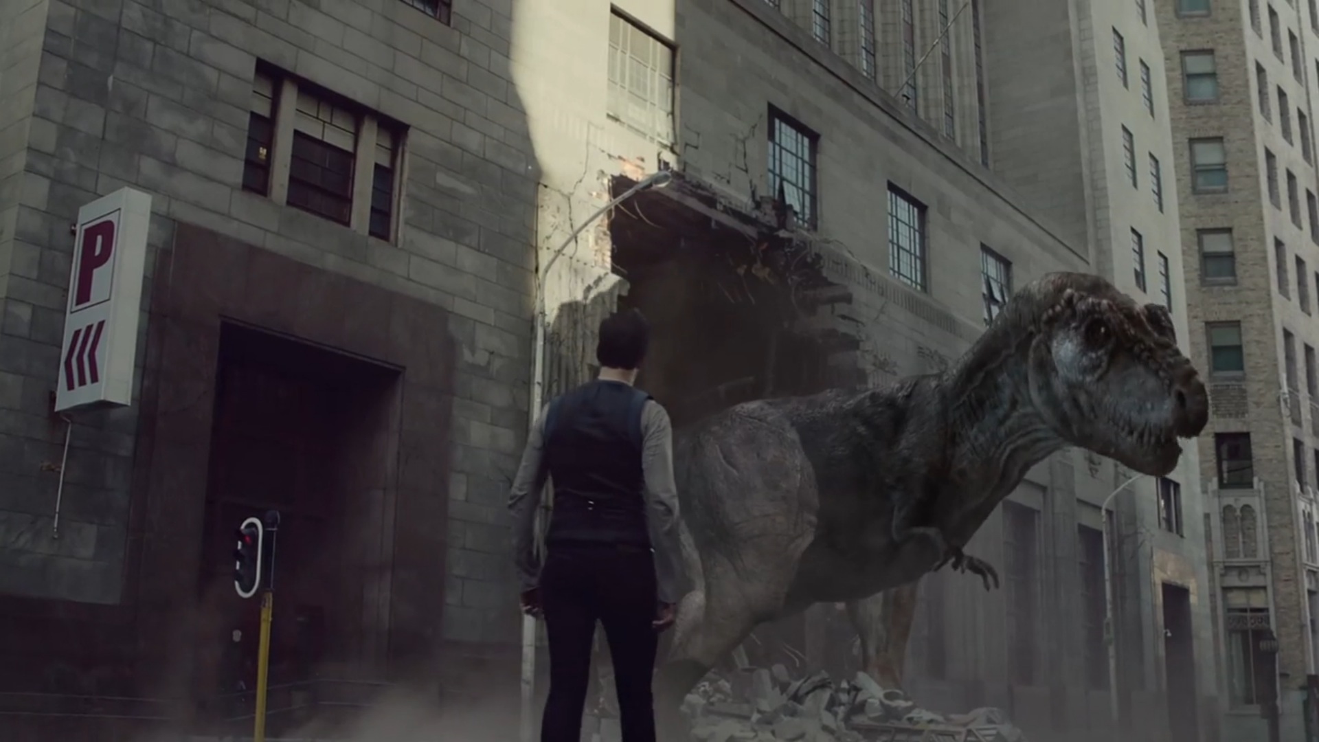 El dinosaurio T-Rex fue diseñado y esculpido en 3D, utilizando ZBrush, este fue uno de los pasos vitales del anuncio, y el software permitió al equipo de MPC medir con precisión el punto de impacto en la pared que destruye la criatura.