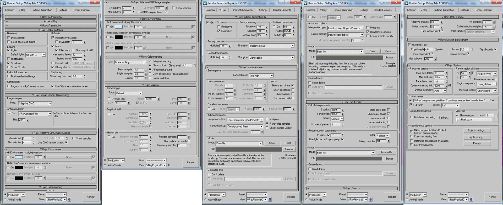 Hola buenos días, en primer lugar me gustaría saludar a toda la gente y agradecer a todos los miembros de esta comunidad el funcionamiento de este foro. Estoy trabajando en unas imágenes para un catálogo de muebles, y cuando me dispongo a renderizar con Vray las imágenes finales me encuentro con que la resolución o el detalle de las imágenes no es lo suficientemente buena a la hora de ser impresas. Mando el setting de Vray, aunque para centrar mis dudas: -En primer lugar utilizo un tamaño de renderizado de 6400 por 4800 píxeles (¿creéis que es suficiente dicha resolución para imprimir la imagen en tamaño 60 centímetros x 42 cmí). Las imágenes las guardo en formato tif.-En cuanto a la resolución renderizo en very hight, los materiales sobre todo las vetas de la madera no tienen la suficiente calidad. Hay alguna función para aumentar la resolución en los materiales tipos subdivisiones o algo así? -En cuanto a lightcache utilizo en las subdivisiones 2500 y en sample size 0,005 y número de pases 8. ¿Debería aumentar estos parámetros para conseguir más calidad en las texturasí-Y para terminar en DMC sampler tengo en adaptative 0,8, noise threshold 0,01, mínimos samples 10 y global subdivison múltipler 1,6. Me podrías echar un cable para ver qué puedo cambiar o si estoy haciéndolo muy mal desde el principio para renderizar con calidad el render? También adjunto render con la máxima resolución para ver qué os parece, agradezco toda colaboración por vuestra parte. Un saludo[ATACH]180807[/ATTACH]