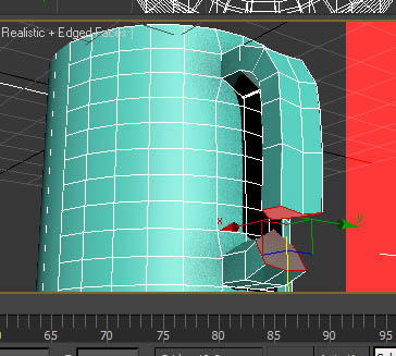Hola, estoy modelando una taza sencilla en 3d Max, y de repente me percate demasiado tarde que cometí un error y le hice una extrución a un polígono donde no debía, y ahora no sé cómo volver a alisar la malla, en la siguiente imagen se puede ver dónde está el error por favor aconsejenme: