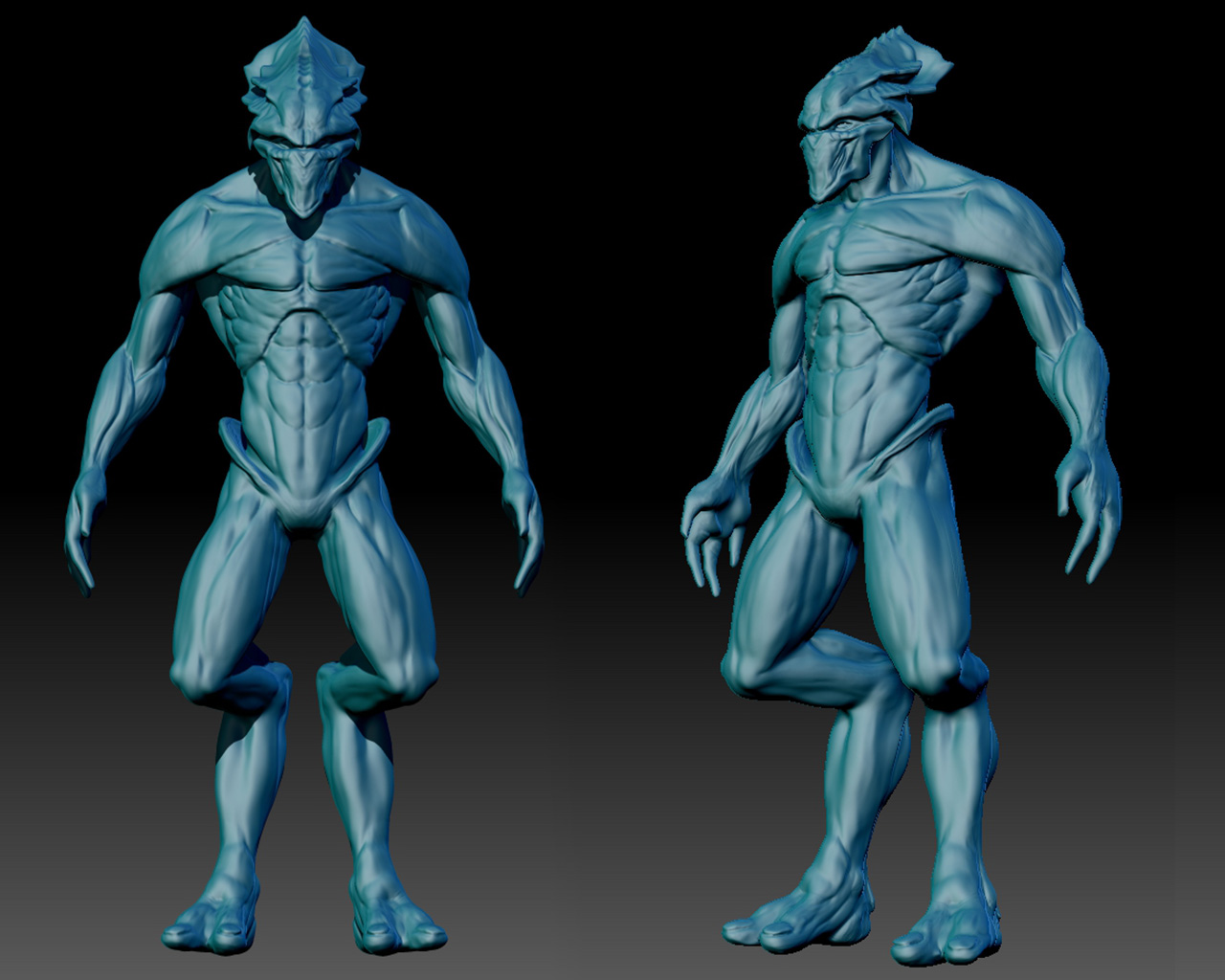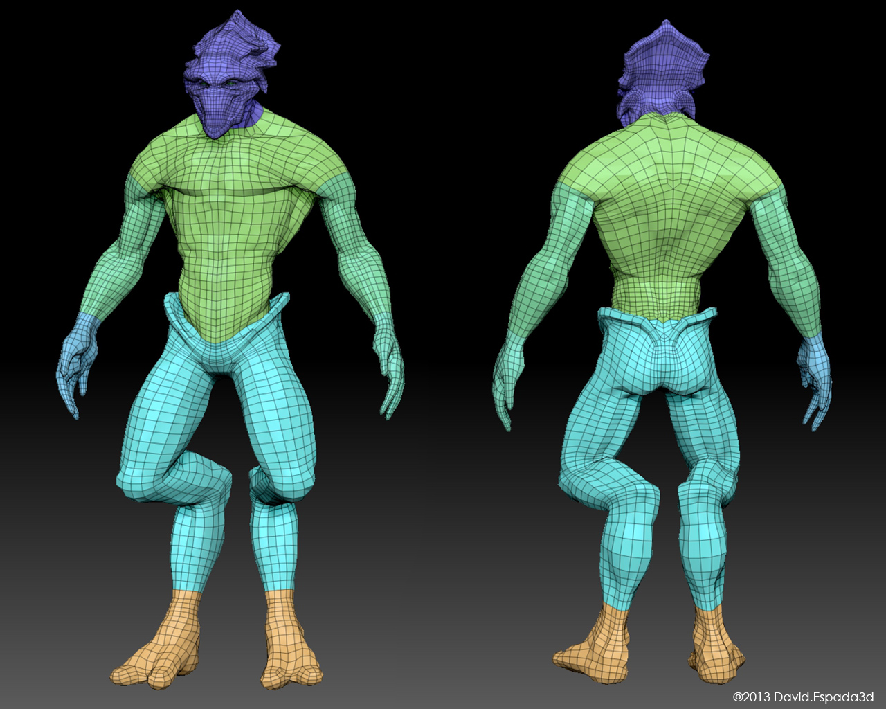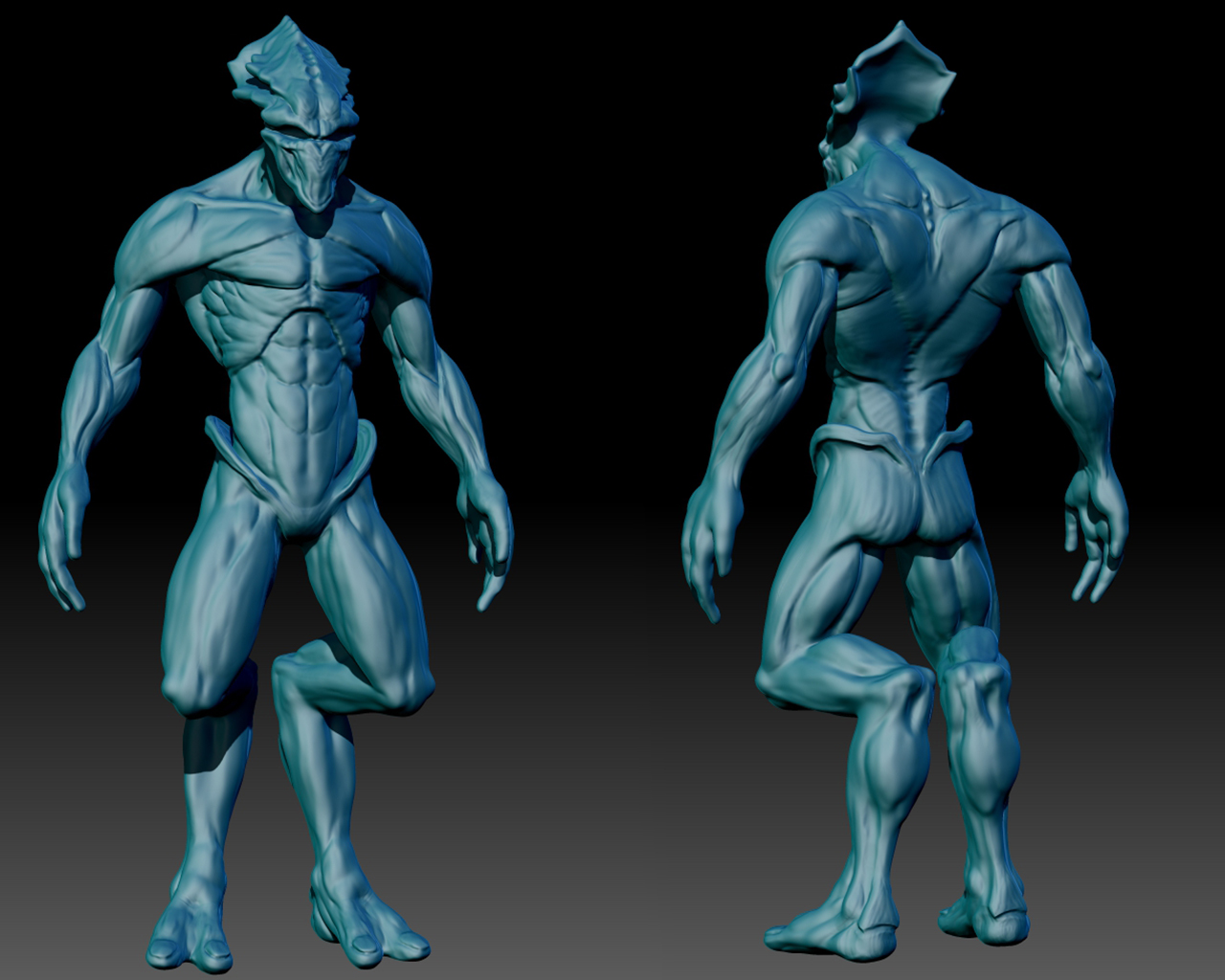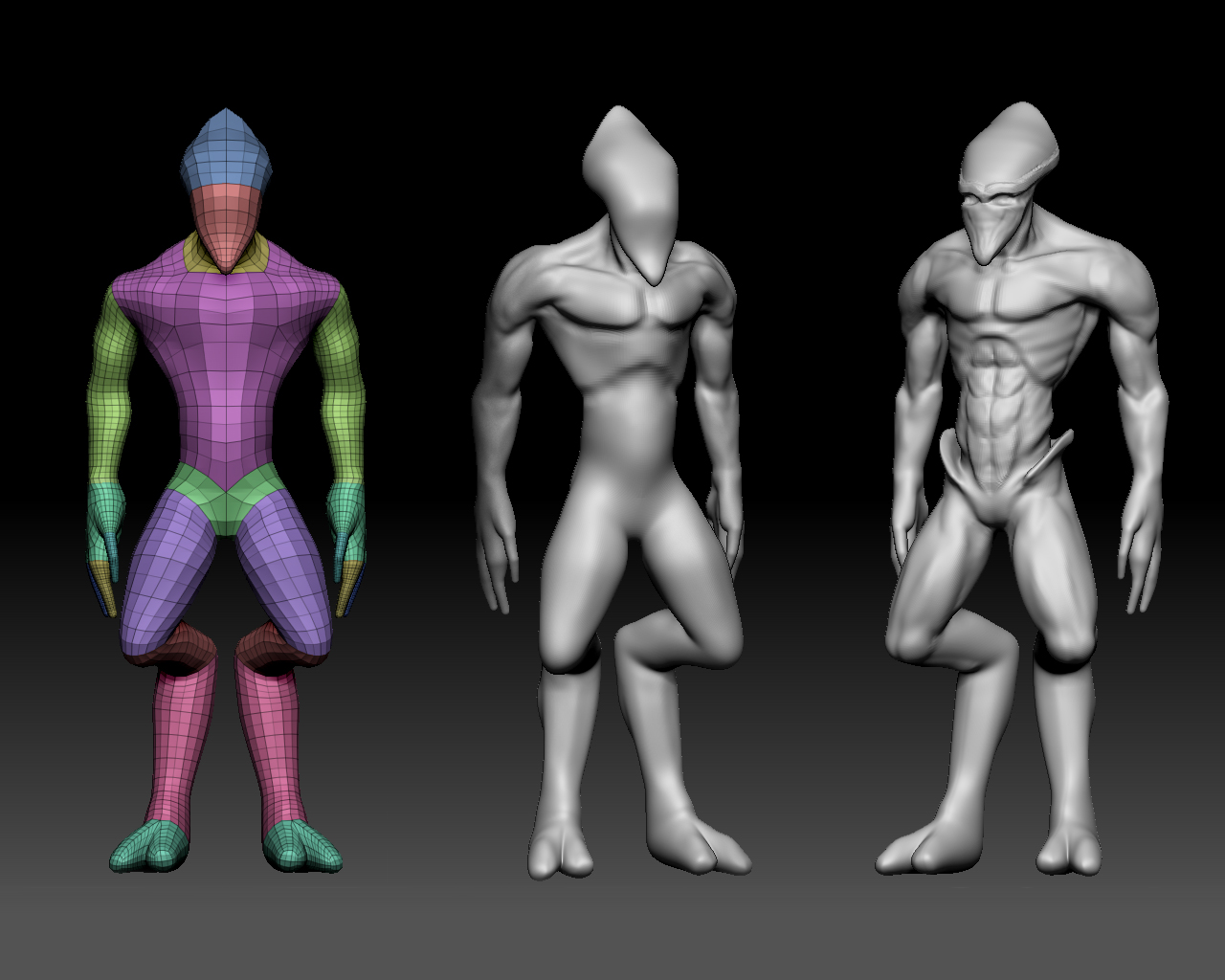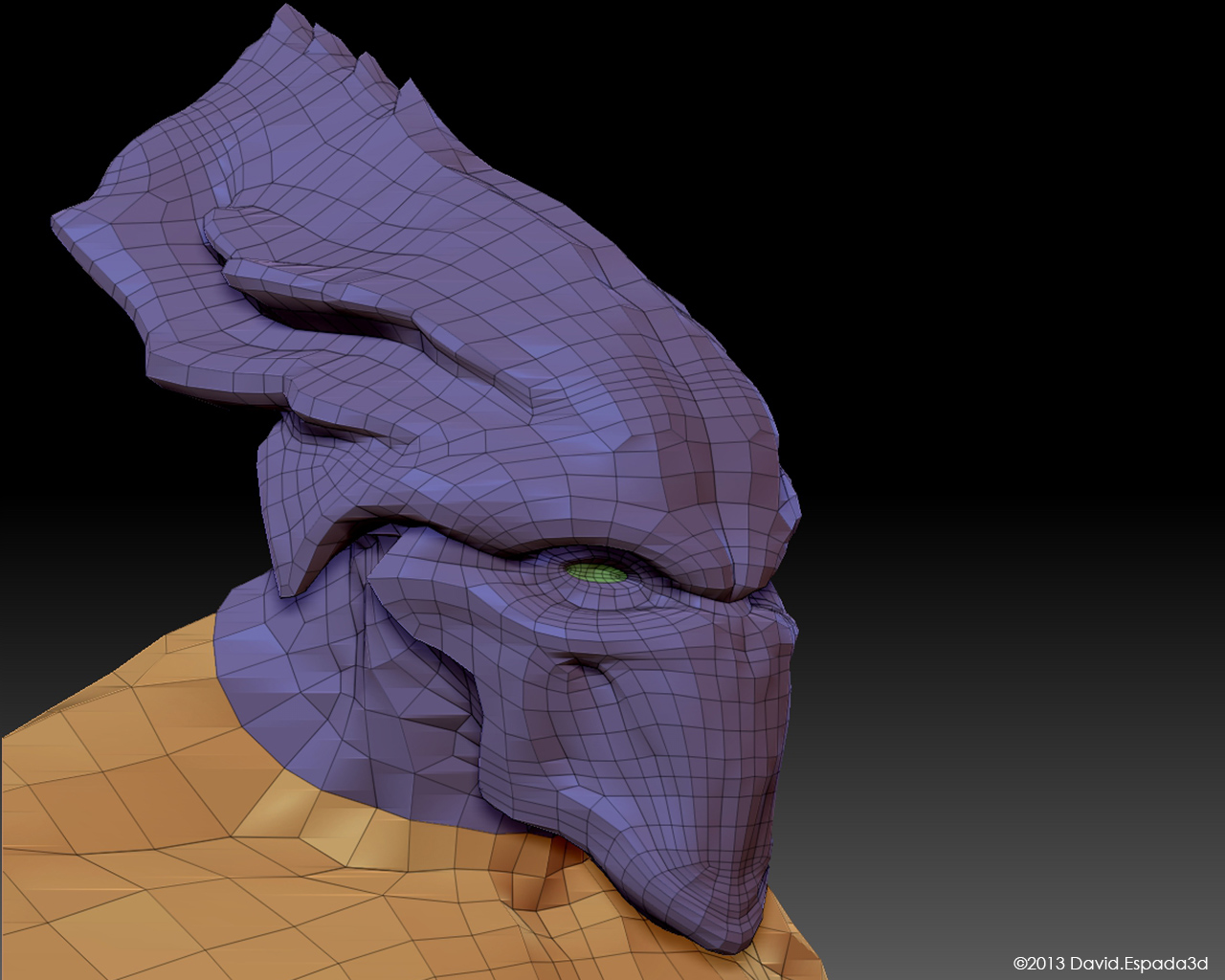 Utilizando unas imágenes de referencia he creado con Zspheras la base. Después me lo lleve a Max para añadirle algunos loops donde he visto que hasta para la base me quedaría corto de resolución, como zonas del pecho y cintura.