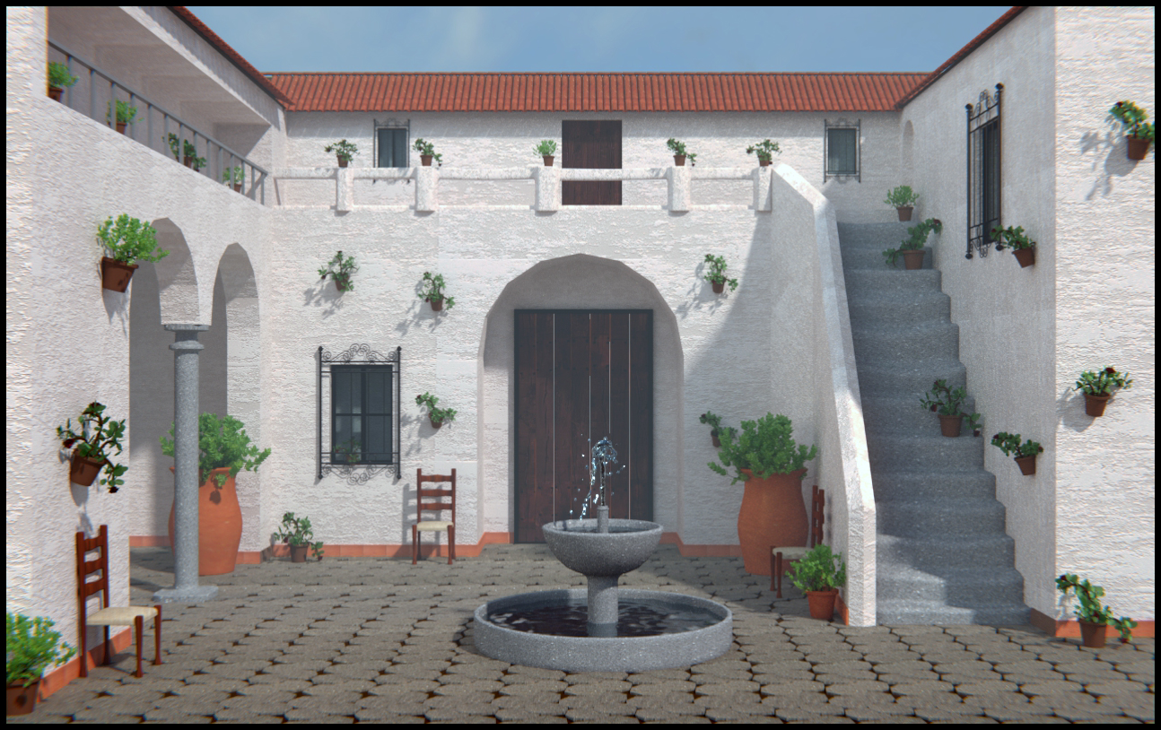 Buenas. Traigo una fotografía sobre un patio andaluz, cordobés en concreto, Modelado Blender, render es en Cycles y postcom en Gimp y Adobe Photoshop un poco.