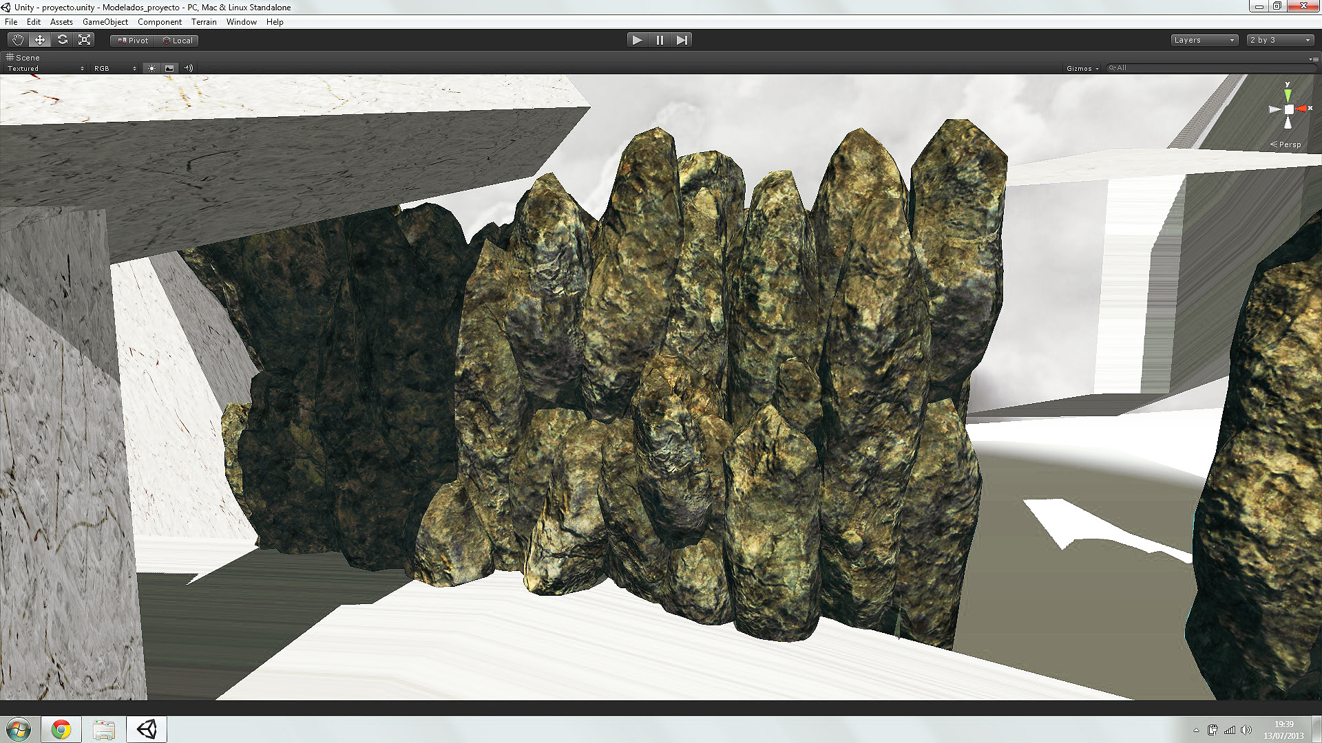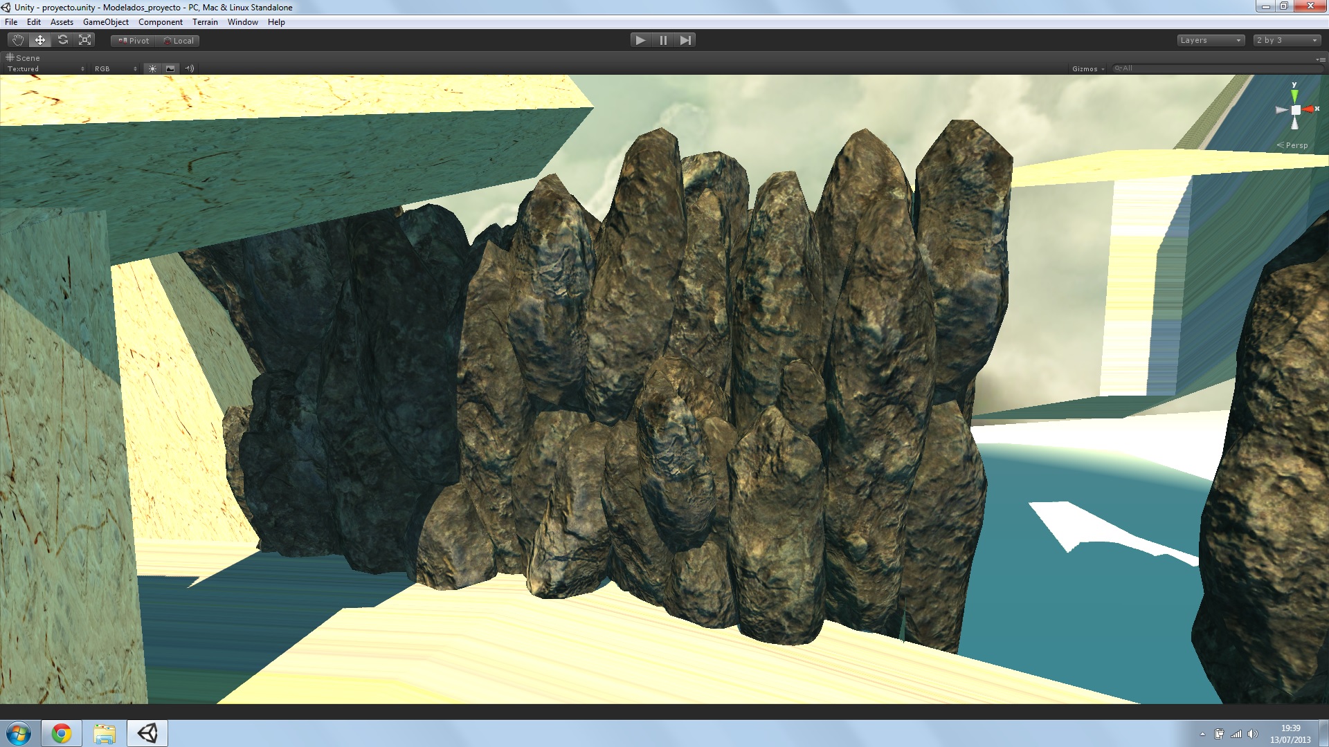 Hola Mortal Kombat, yo no soy experto en Unity3D, pero aparte de la luz que no es buena, creo que podrías potenciar un poco la textura de las rocas con una textura de granito mezclada con la tuya.