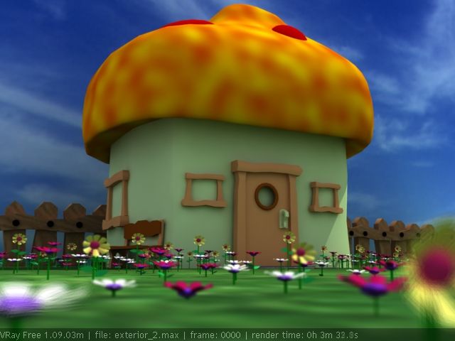 Este es un modelo que hice para probar el Vray, pero me gustó y he seguido retocando, aún me queda mucho, pero bueno siempre otras opiniones vienen bien, todavía me quedan detalles como la hierba he estado haciendo pruebas conl el Ornatrix pero es muy inestable si alguien me recomienda otro plugin se lo agradecería.