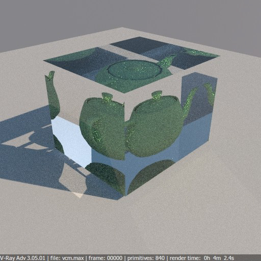 Fusión de vértices. Mejoras de la cáusticas reflejadas (Como una linterna iluminando un espejo). Creo que lo de fusión de vértices hace referencia a cuando tenemos dos superficies tocándose porque sus vértices comparten exactamente el mismo punto en el espacio (como la tetera qué podéis ver dentro del cubo de cristal en el mensaje de 3dpoder). Muchos renders hasta la fecha, acababan dando errores en esas áreas Problemáticas donde el motor de render no sabe cuando sombrear haciendo caso al material de uno u otro objeto.