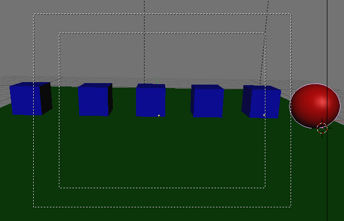 Volvemos a cambiar a Object Mode y creamos unos cubos de color azul y los colocamos en línea.