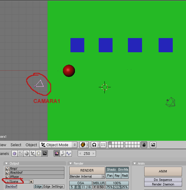En Camara2 (Sce:Pose2) pondremos los valores de Anim en Sta:101 End:250 y hacemos otra prueba Anim.