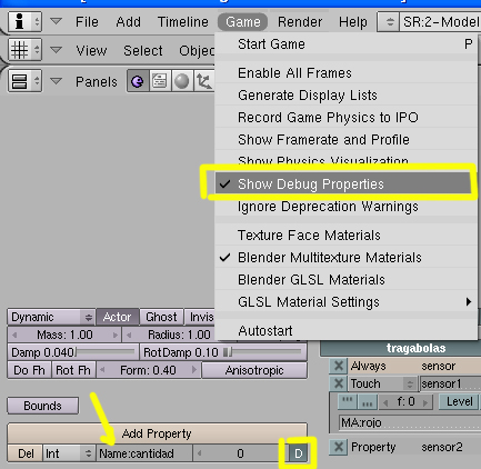 Si queremos verlo en pantalla, podemos presionar en Game, el Show Debug Properties, y presionar la letra D de la Property.