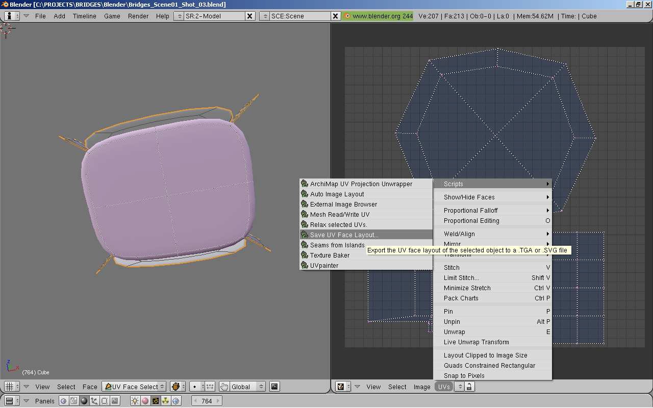 Después de desenvolver tu objeto y alinear tus vértices, guarda la LAYAUOT UV como una imagen. Usa el Script Save UV Layout en UVS cripts ave UV Layout.