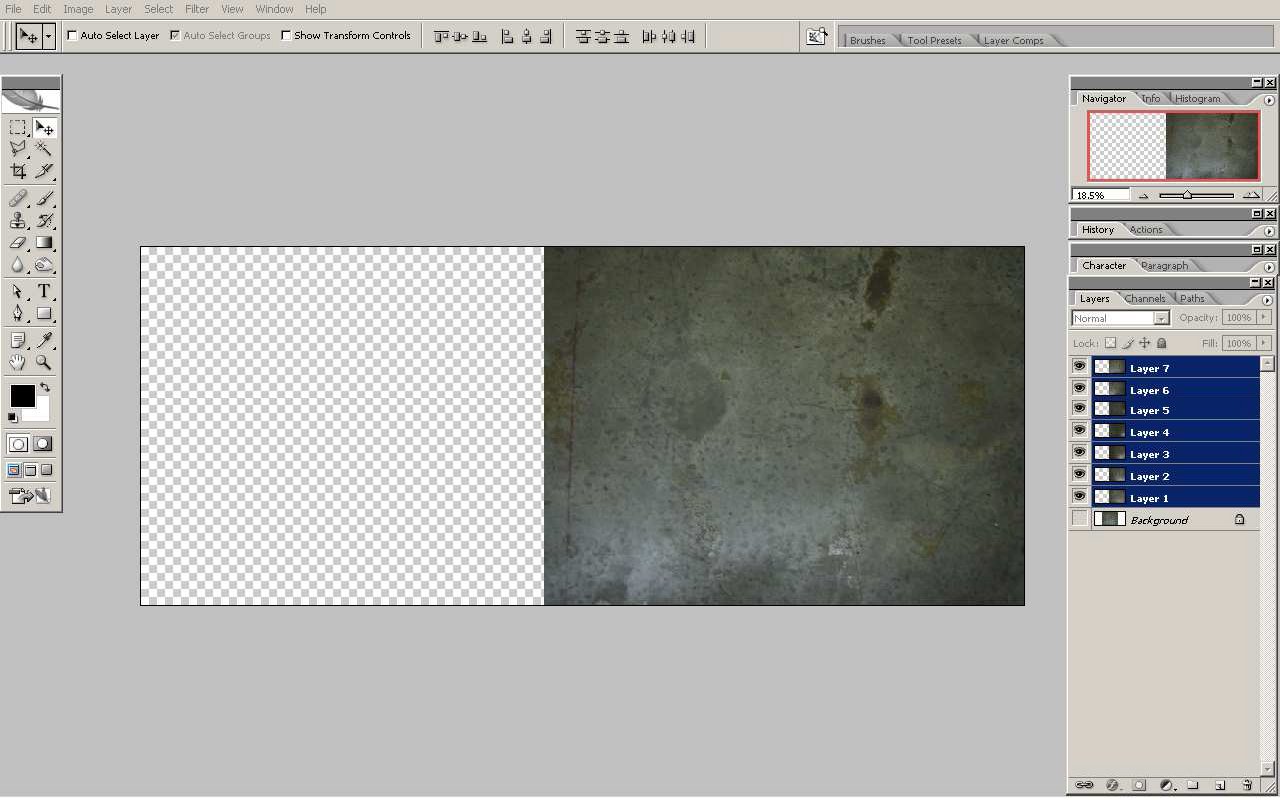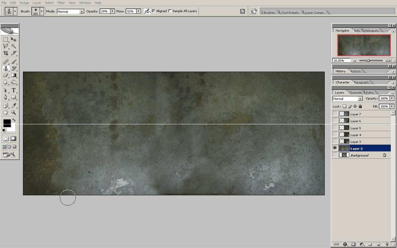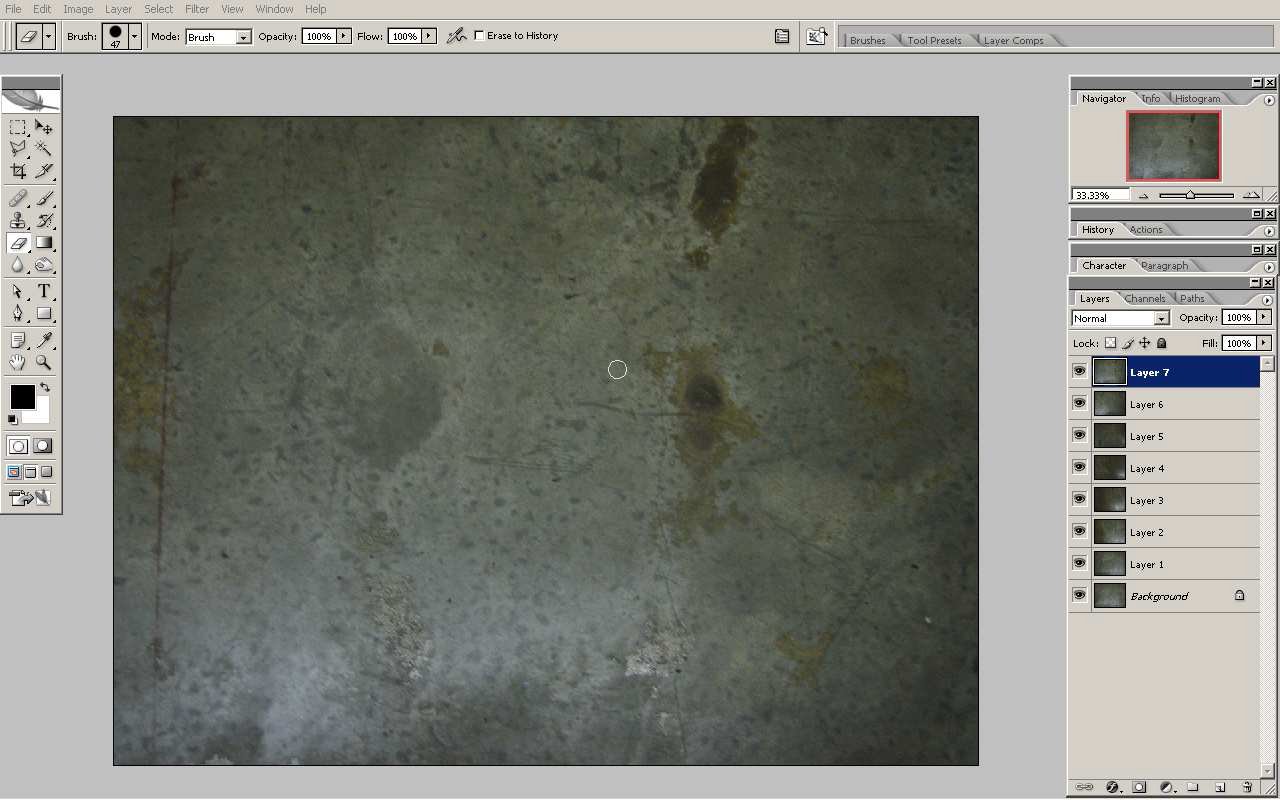 Recuerda, esto es arte, y no capacidades técnicas- hay más de un método para hacer cualquier cosa. Para el path, hice varias fotografías de hormigón. Traté de unirlas como en una panoramic (asegúrate que los bordes se alinean). Algunas cámaras tienen la función interna para hacer esto.