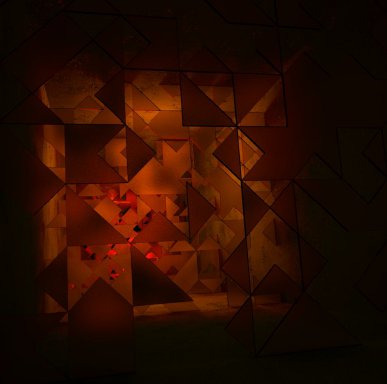 Introducción. He decidido redactar este artículo después de recibir una invitación de la revista Blenderart para redactar un artículo sobre la iluminación de estas piezas. Para comenzar con lo básico, el modelado fue hecho con grupo de mallas extrusionadas con caras triangulares eliminadas aleatoriamente y los materiales usados fueron un material vidrioso (glossy) para él vidrio y un material agrietado para él pasillo (hall).