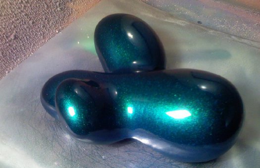 Adicionalmente, puede ser muy interesante visualmente añadir un suave cambio del color iridiscente sobre todo el cuerpo visible, sobre todo en las aristas del objeto. Hacer los cambios de color muy suaves. Sin embargo, si miramos al objeto de Phill, podemos ver que no es el efecto típico de iridiscencia. Las aristas son más oscuras simplemente por la falta de pigmentos metálicos brillantes. Simplemente vemos el color base de la superficie de imprimacción (primera capa).
