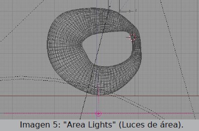 En caso de que cambie el valor Size, incremente la superficie desde la que se emitira la luz y, por lo tanto, la intensidad de la iluminación será diferente. Redúzcalo y los rayos serán comprimidos y la intensidad de la iluminación será muy fuerte. Use el indicador de distancia (Distance) como referencia para él escalado. Ver imagen 5.