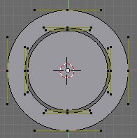 modelando. primero, en vista por encima (tecla 7), crea un círculo Bézier, space>add>curve>Bézier circle, y nombralo curvebevc1 (para uso futuro). Siempre recuerda nombrar tus objetos en Blender, los hace más fácil de encontrar en la ventana exterior. En modo edit tab duplica el círculo en su lugar shift + d] / [Control], y lo escalas (tecla s) en el primero. Hazlo de nuevo para curvar tu círculo como en la figura 1.