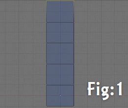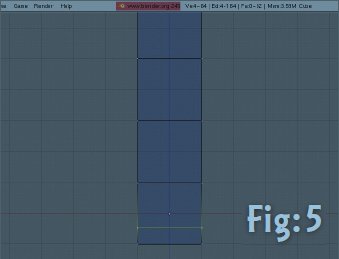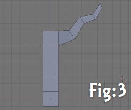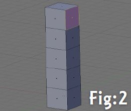 Tronco. Empezaremos creando un tronco muy básico. Empezaremos con un cubo, utiliza Barra espaciadora>Add>Mesh>Cube. Elije la ronda de encima de vértices y extraela (Tecla E> Región) hacia arriba 4 veces. Ayudaría estar en modo Wireframe mientras eliges rondas superiores de vértices (figura 1). Esta será el tronco de nuestro árbol.