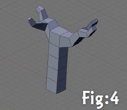 Continúa y crea una nueva rama en el lado opuesto usando la misma técnica indicada en el paso anterior. Puedes hacer ramas pequeñas extrayendo vértices de distintas caras de las ramas moviendo y escalando al igual como hiciste con las ramas principales (figura 4).