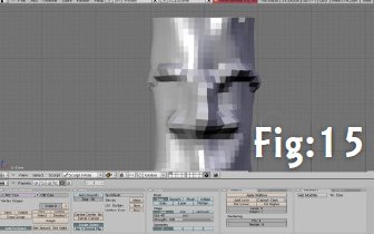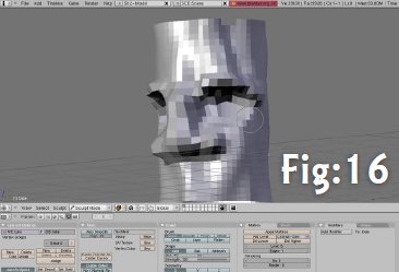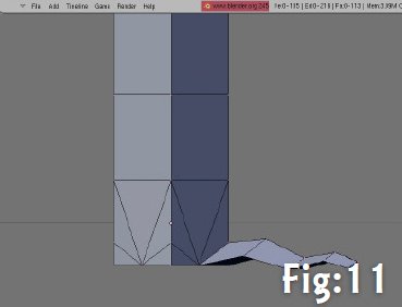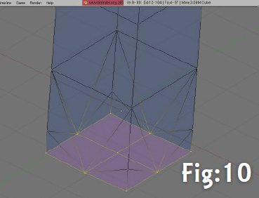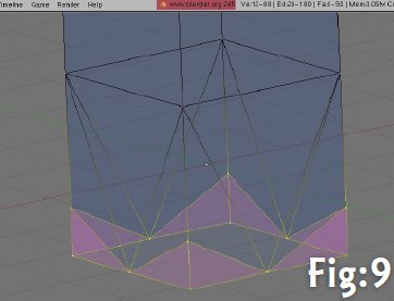 Mueve esos cuatro vértices hacia abajo incluso con los vértices dejados de la ronda de abajo, y rellena las partes desaparecidas seleccionando tres vértices al mismo tiempo presionando la tecla F (figura 9).
