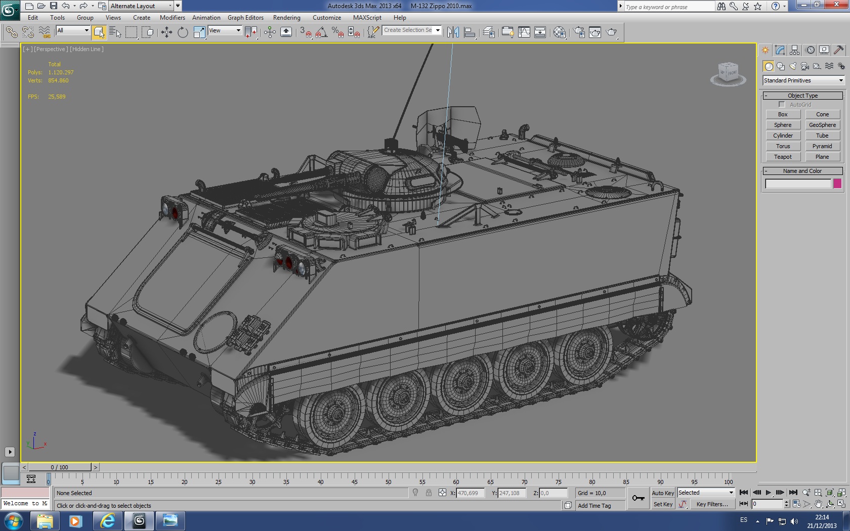 Hace muchísimos polígonos, de los 275.000 polys que tiene la torreta la mayoría son de la soldadura. Al hacertelas en spiline editables, las he reducido al mínimo y ocupan eso, unos 150 mil, así que, se me ha ocurrido una idea (no muy brillante, pero efectiva) de reducirlos a un 50%, si funciona, claro, se Trata de hacerles una booleana y quitarles la parte que está enterrada y no se ve y luego cerrarlo. Si funciona bien y si no, pues así se queda.