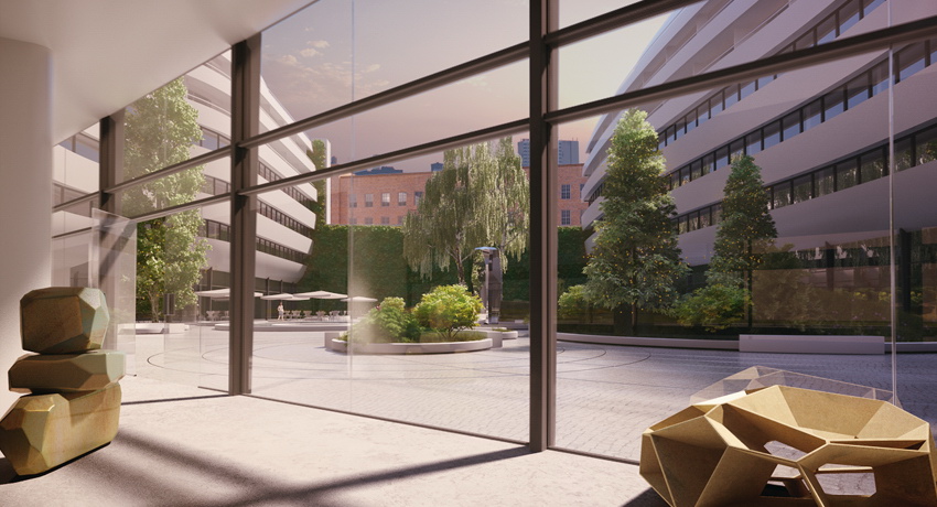 Visualización arquitectónica del Hilton Wroclaw.