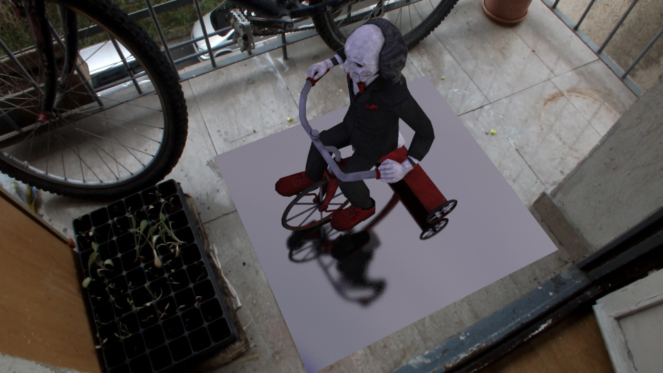 Hola, tengo un problema con los reflejos en 3ds Max con Vray, el problema es que quiero hacer la escena que os he adjuntado, que es un video hecho con el Boujou y las sombras ya se ponerlas(os adjunto una fotografía rápida) con un matte shadow, lo que quiero es que, al ser el suelo brillante, me gustaría saber si se puede exportar el reflejo del cubo para que se vea en el suelo.