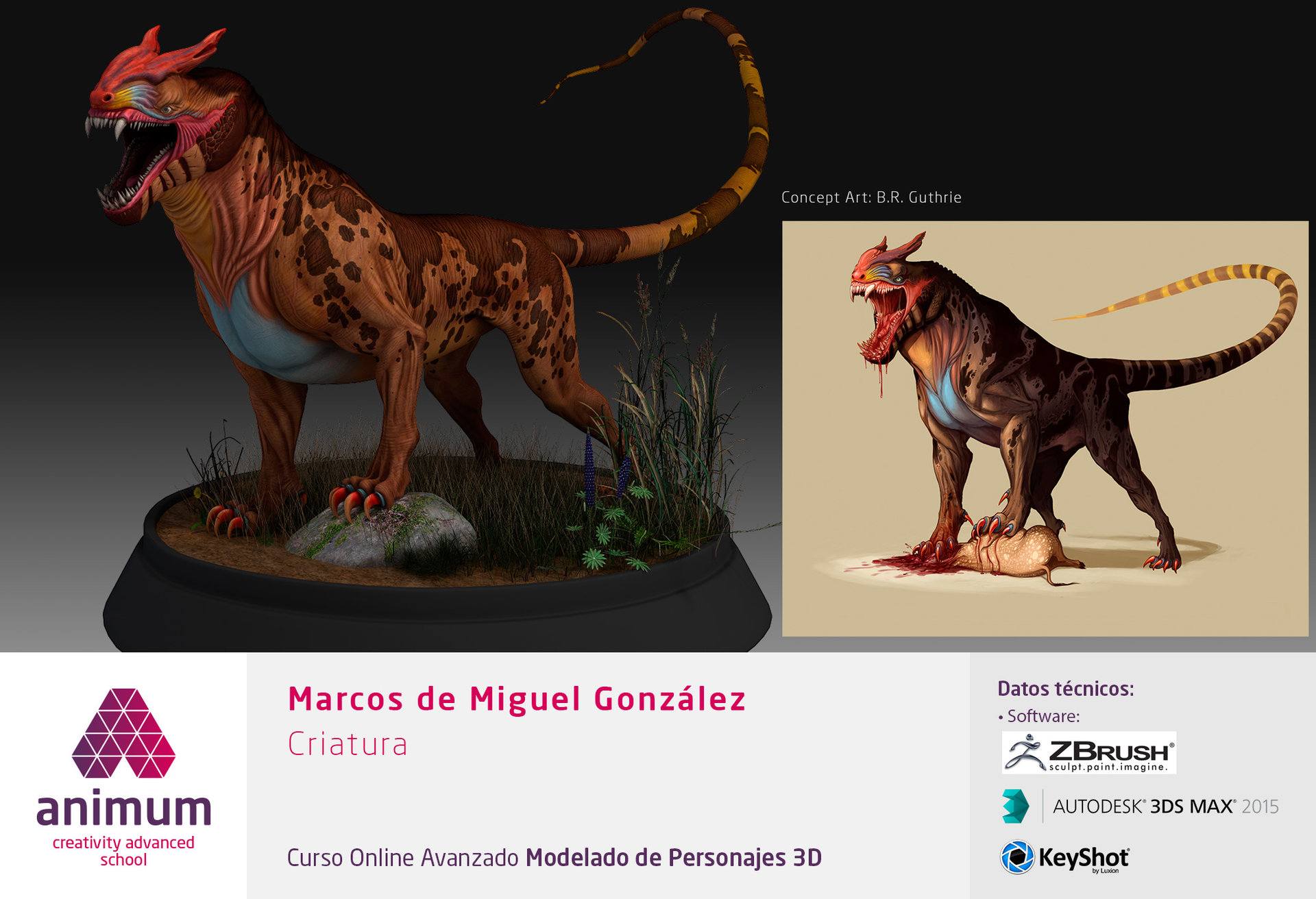 "La postura está realizada con ZBrush, los renders a tiempo real están hechos en 3dsmax con Xoliul Shader y la composición final está hecha en Adobe Photoshop".