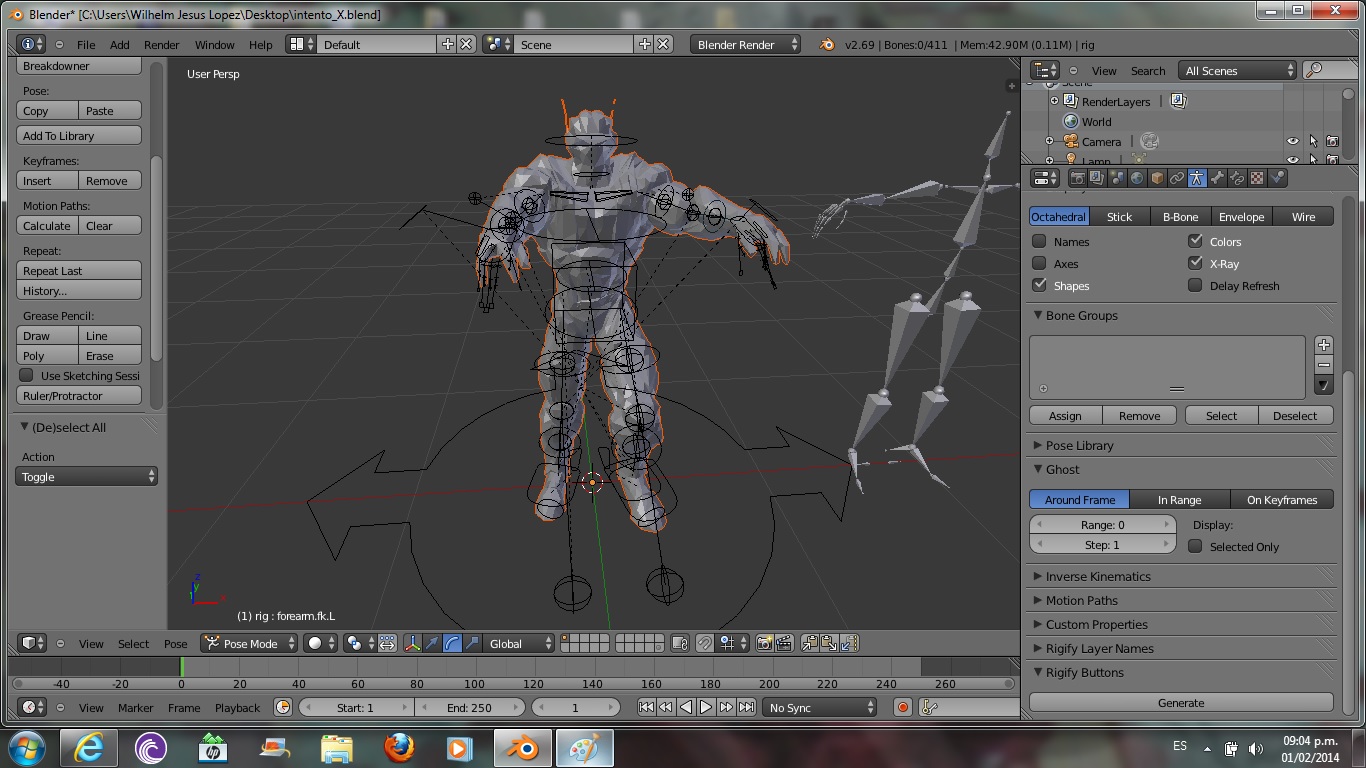 Lo que intento hacer ahora es rigearlo (espero que este bien escrito), normalmente lo podría hacer con el ZBrush, pero el problema es que lo quiero para exportar al Unity 3D y el Rig del ZBrush no es compatible, según se el Rigibody de Blender si lo acepta (si no, por favor desmiéntanme).