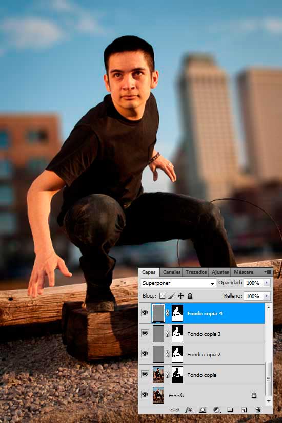 Ajusta el Modo de fusión de la capa a Superponer y a continuación duplica la capa un par de veces para reforzar el efecto.