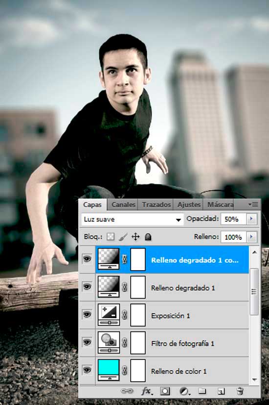 Duplica esta última capa creada y establece su Opacidad al 50%.
