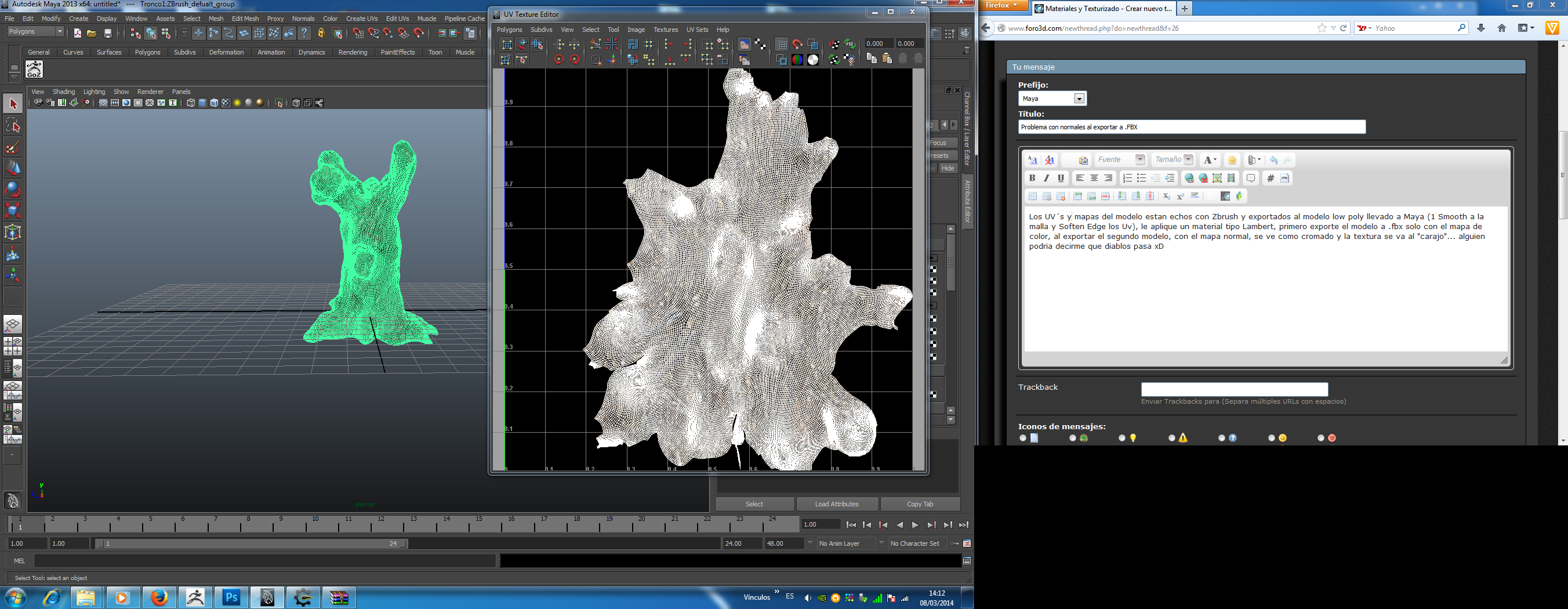 Los UVs y mapas del modelo están hechos con ZBrush y exportados al modelo Low Poly llevado a Maya (1 Smooth a la malla y Soften Edge los Uv), le aplique un material tipo Lambert, primero exporte el modelo a (*.fbx) solo con el mapa de color, al exportar el segundo modelo, con el mapa normal, se ve como cromado y la textura se va al carajo, alguien podría decirme qué diablos pasa, (adjunto modelo, mapas, obj y. Fbx). Gracias.