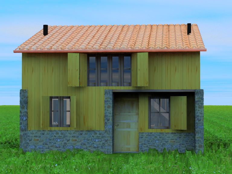 Vaya, pero entonces tienes mejores opciones, Vray Fur Vray displacement y por ahí hay plugins que te pueden ayudar a mejorar el pasto, Vray materialspara las maderas y piedra, hay una opción en el desplazamiento para qué no abra en los bordes de las paredes, las tejas son modeladas? O es desplazamiento? Pueden mejorarse.