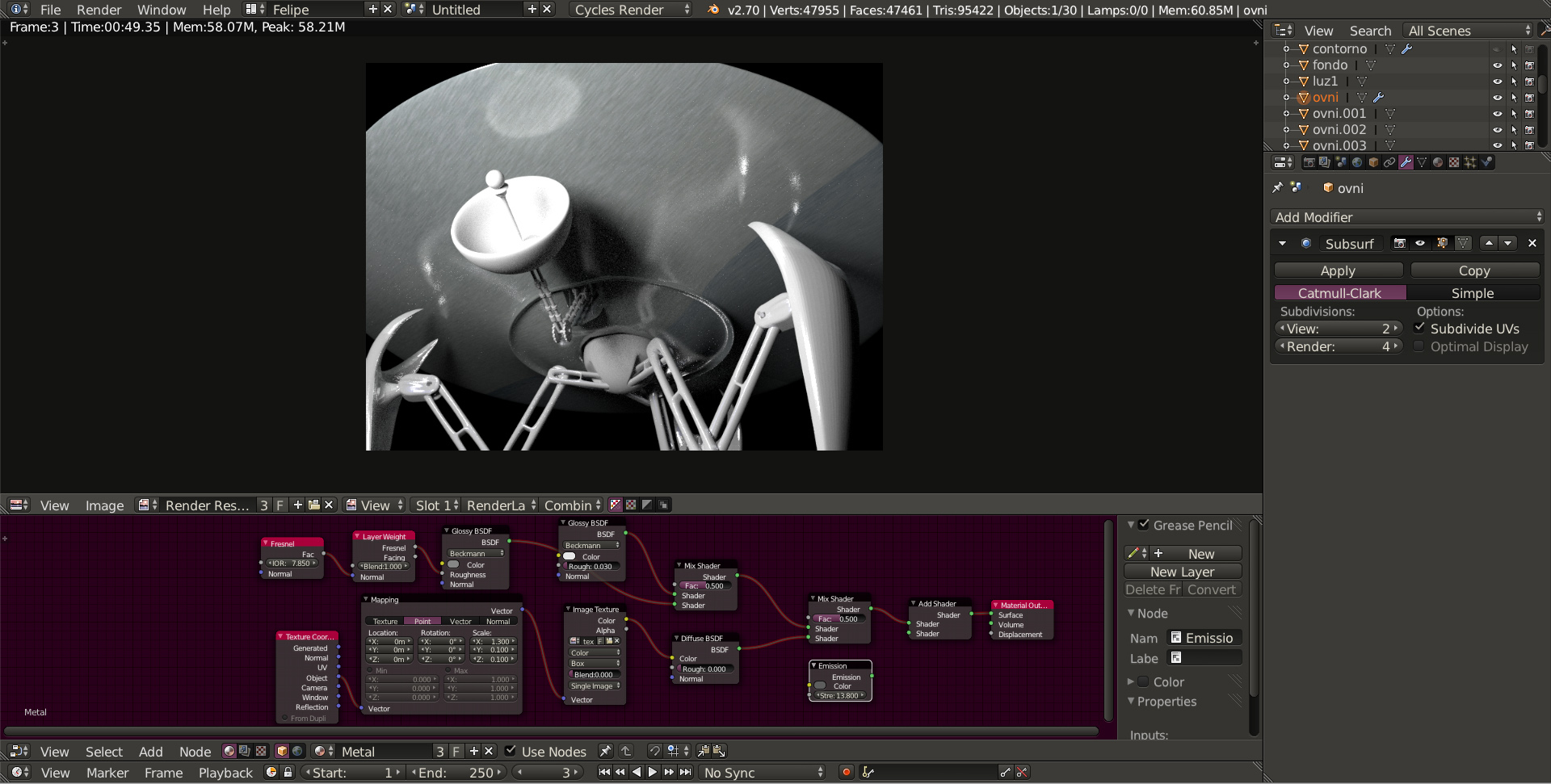 Hola. Tengo un problema. Una textura qué da una sensación de metal al ovni que estoy haciendo.