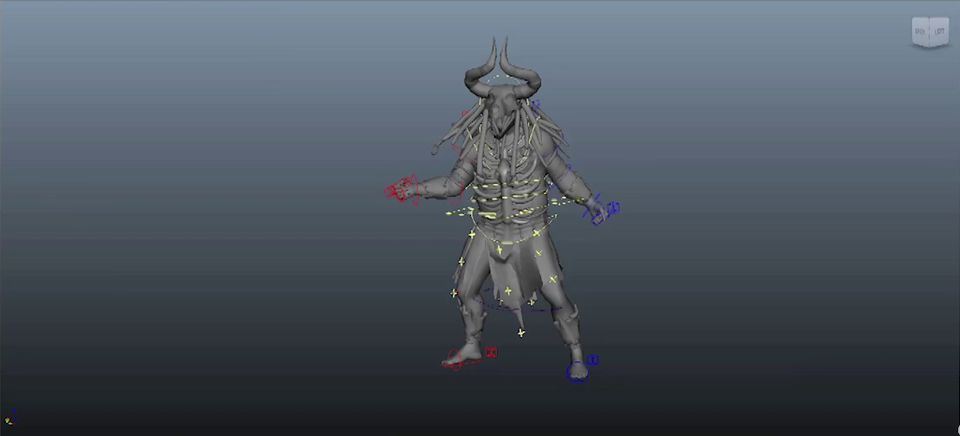 Por orden de aparición, el elefante, el Oracle, los bárbaros, Oswald y Glott. Utilizando las herramientas Anim Tol Box y Rope Setup tol.