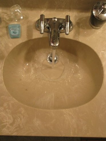Esto sería un mono-mando a medio chorro, al no tener fuerza, el agua se ve transparente y curvilínea.