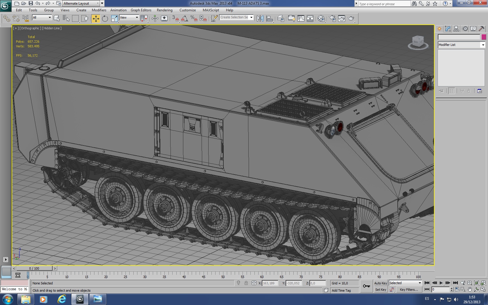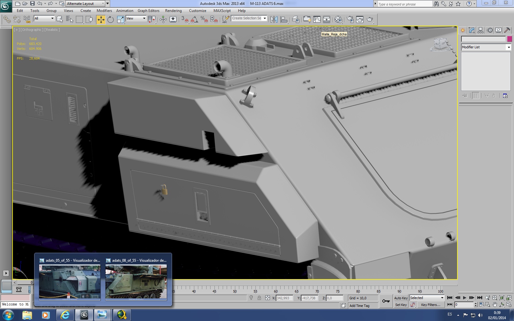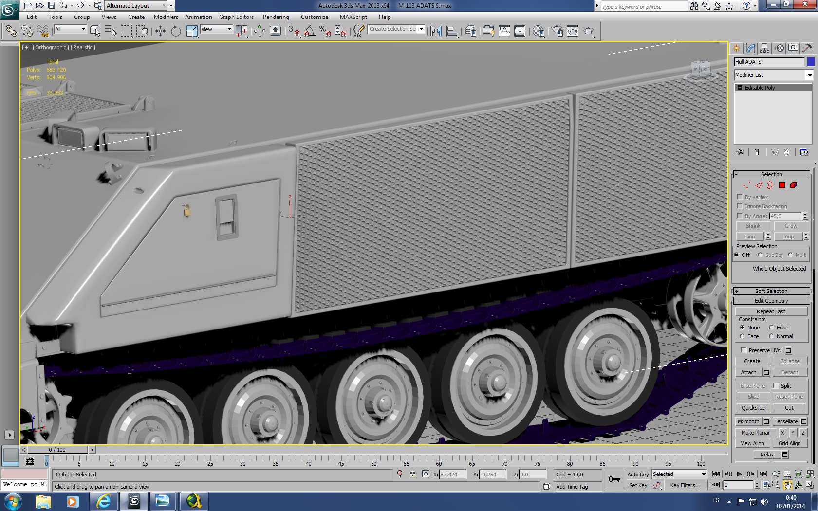 Sí, otro M-113. Pero esta vez es el más maqueado de todos, hasta me tocará remodelar las orugas, ya qué usa otro eslabón distinto. Es canadiense y lleva unos peasos misiles de narices. Por ahora poca cosa, le he modelado las puertas laterales que dan a los equipos del sistema. Son abatibles hacia afuera, aunque dentro no hay nada, más que el hueco donde encajan, pero que en un futuro s epodría modelar todo el interior sin problemas.