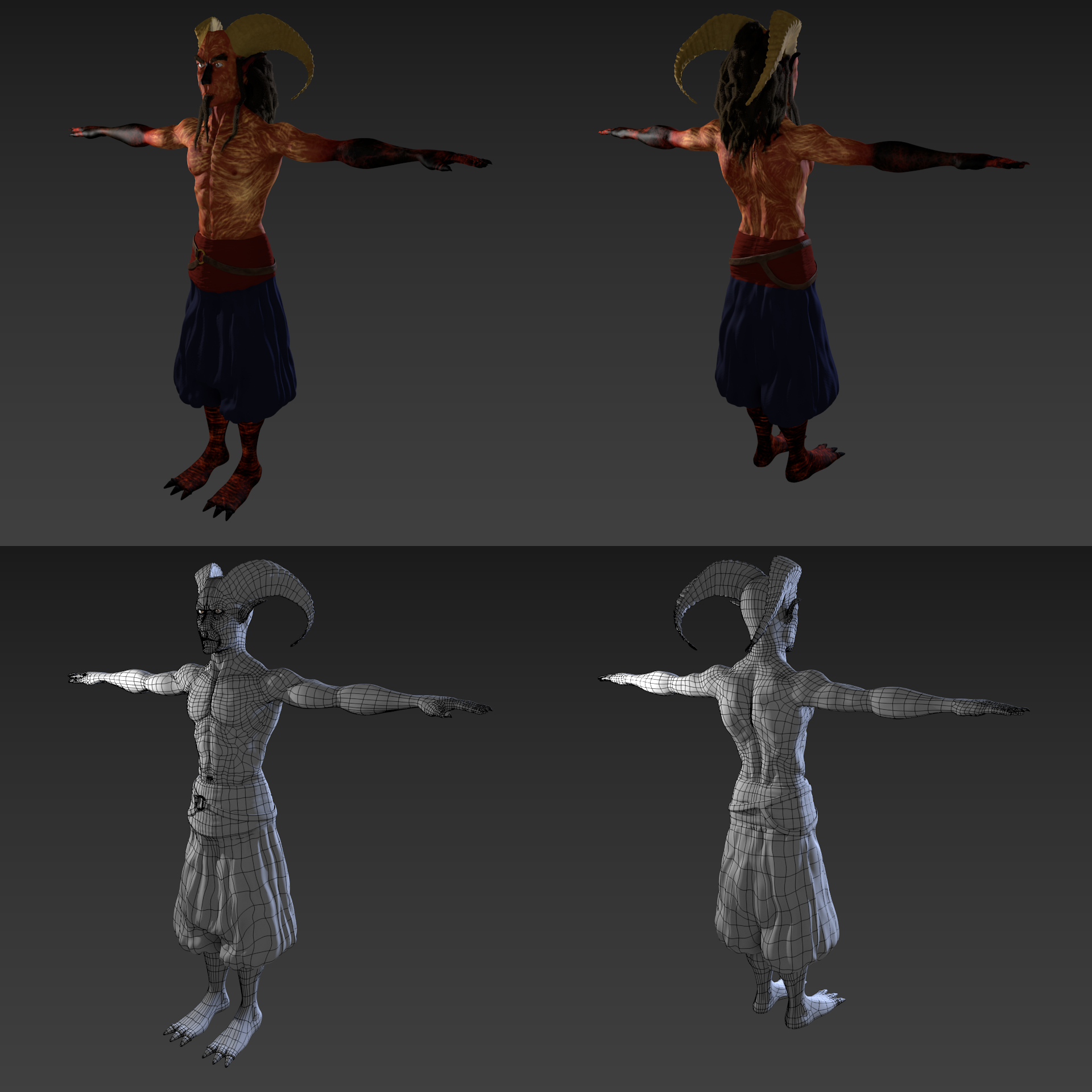 Muy buenas. Aquí traigo mi último modelo, que ya he dado por terminado en cuando a modelado y texturas, aunque soy consciente de que todavía le quedan algunos cambios que acabaré haciéndole. Se trata del demonio xiribelles, demonio del bosque, astutorial e inteligente de la cultura catalana y, además protagonista del libro terra de dracs (tierra de dragones) de guillem bou.
