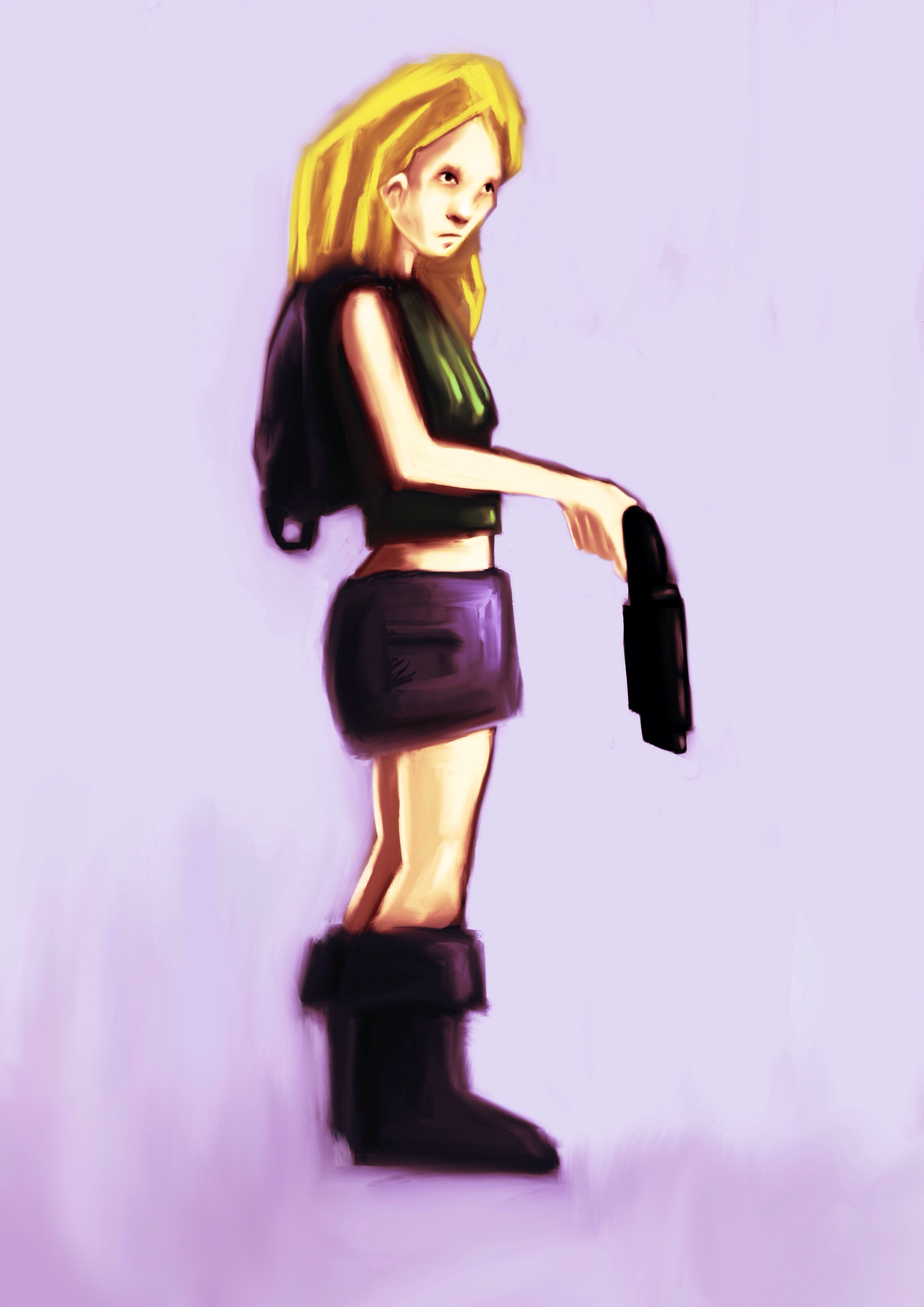 Qué buena la línea de los bocetos para ser en tableta. Me gustan sobre todo el de la chica haciendo el corte de manga y el chico con dos armas, aunque quizá es un poco demasiado simétrico, pero me gusta.