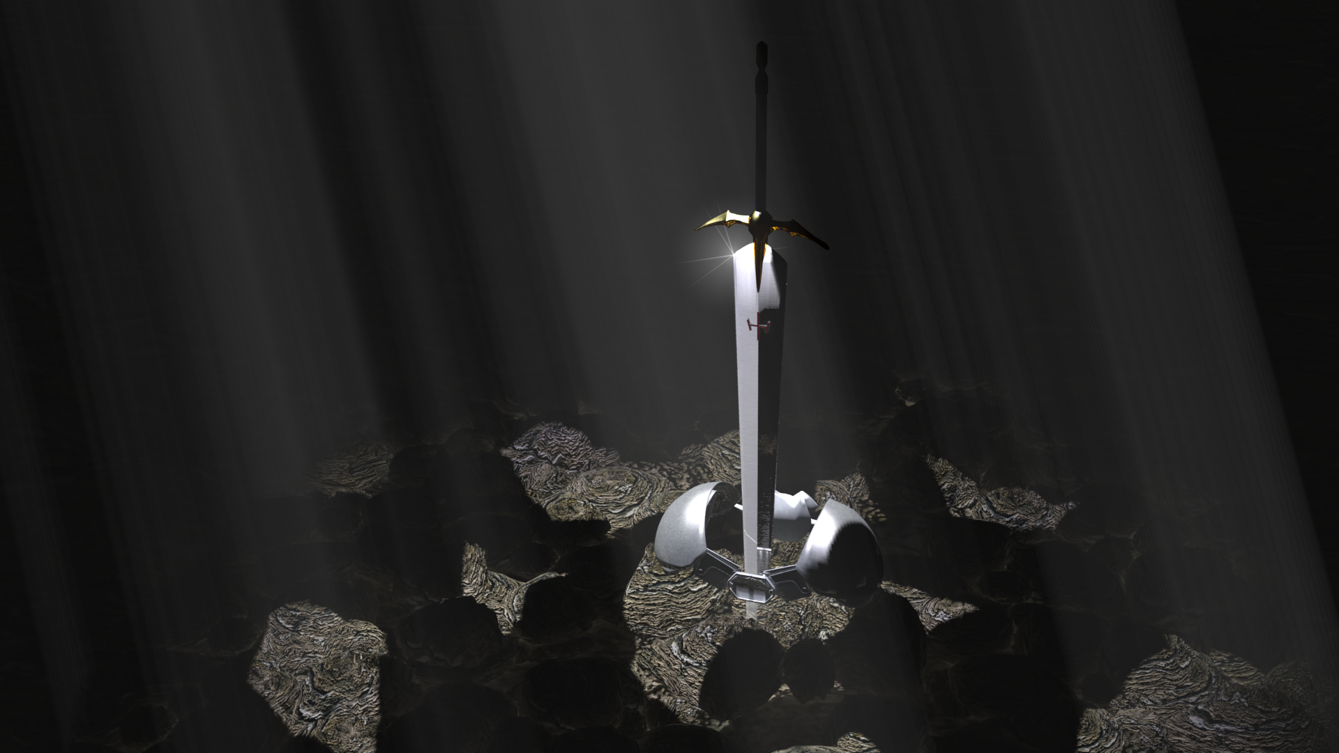 El problema de los materiales con tanta reflexión (como el de la hoja de la espada) es que, si no hay nada en el entorno que reflejar quedan bastante pobres y la escena pierde fuerza.