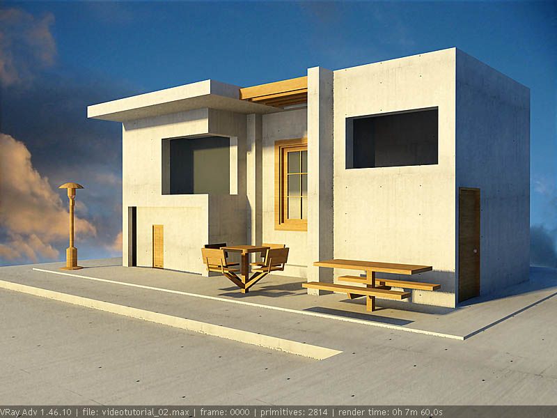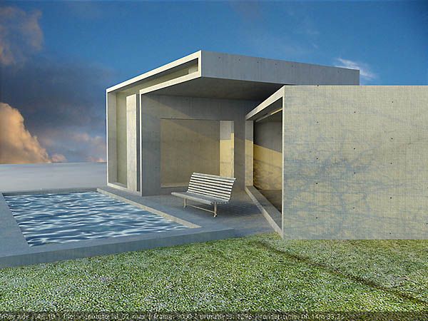 Conste que para mí lo bueno de tener la escena es que es un exterior sencillo con el que uno puede seguir haciendo pruebas, como escena de pruebas vamos. 7 minutos de render y a seguir probando, estaría bien para ahondar en iluminación exterior con Vray,probar con fotones en una escena exterior, etc.