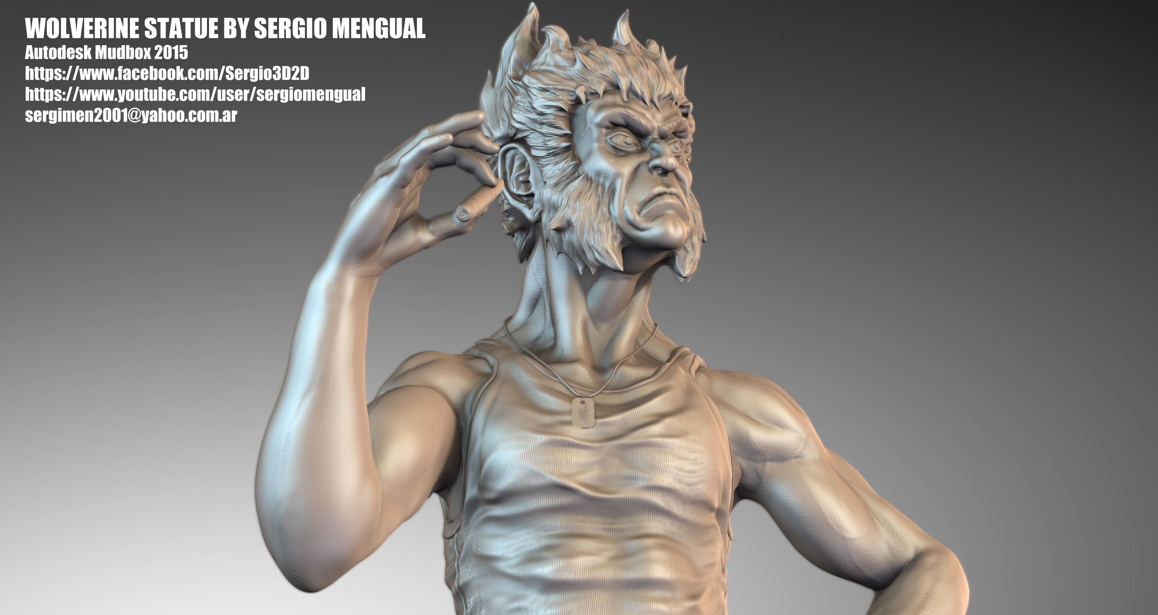 I finished the Sculpt of the body, (jeans, bots, etc), and posed this Wolverine Sculpt, and added the other gadgets, like the cigar, claws,ID tags.