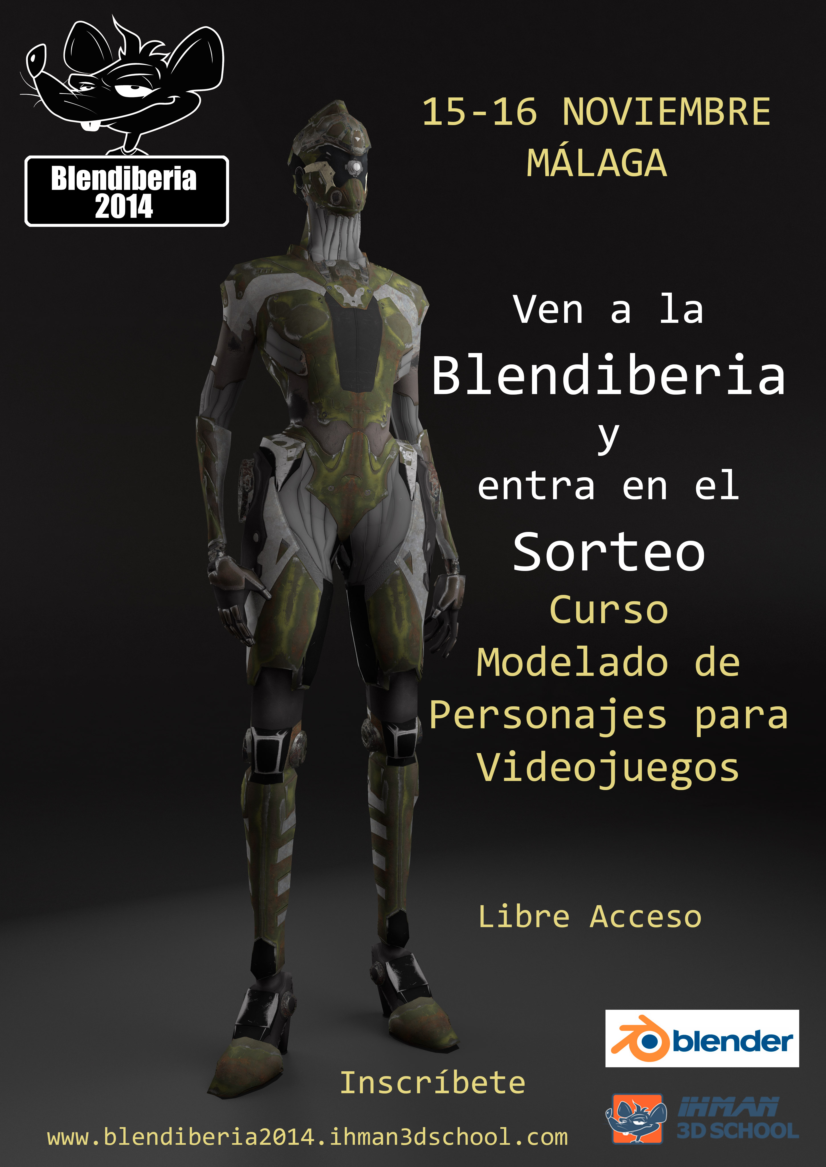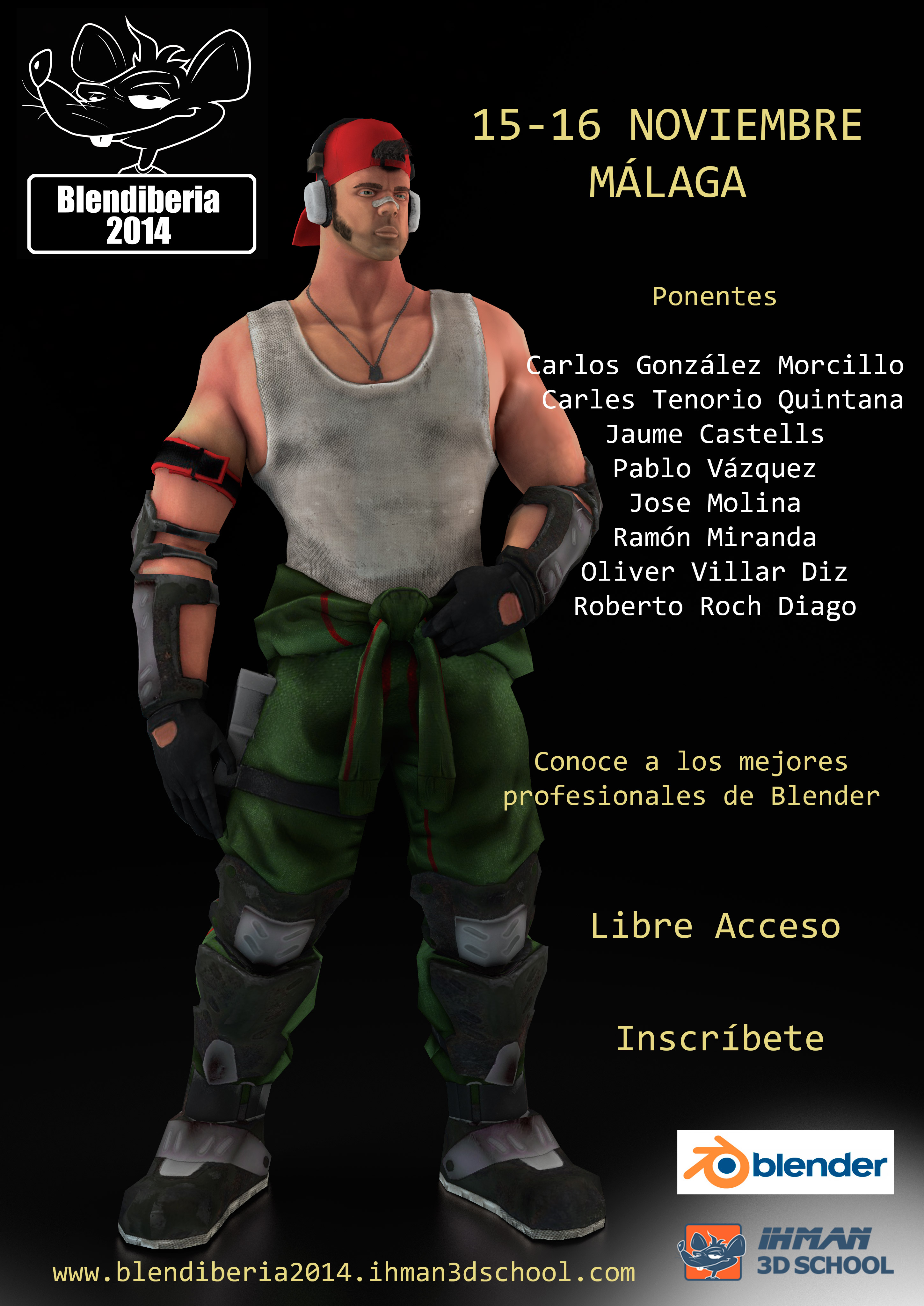Para registrarse en el evento como asistente hay que hacerlo en http://blendiberia2014.ihman3dschol.com/.