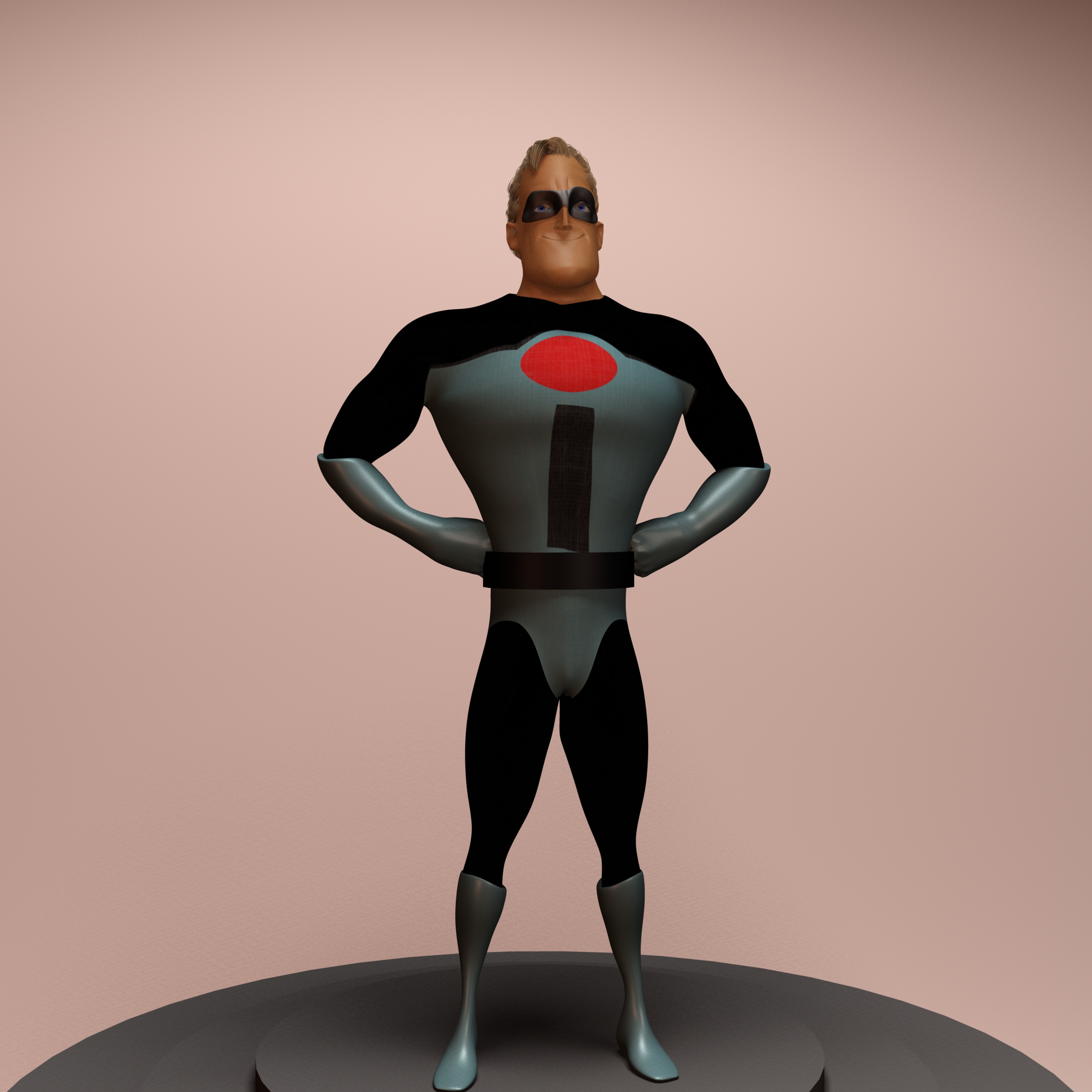 Hola, aquí dejo mi modelo de Mr, increíble de Disney Pixar es la versión de joven por eso no está tan gordo y es menos voluminoso estoy a punto de terminarlo.