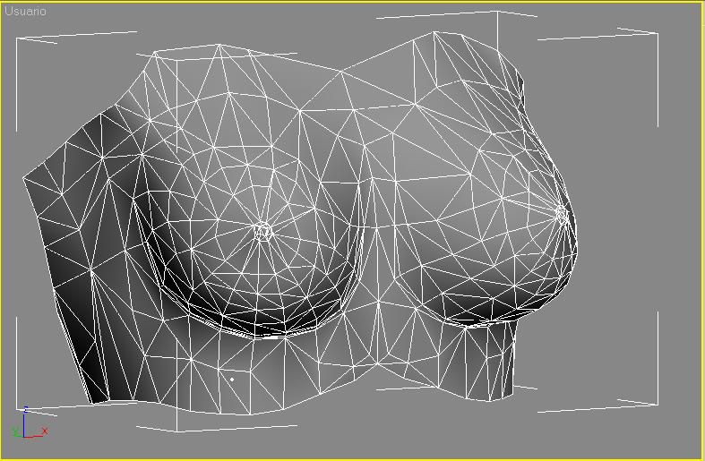 Hola, te quiero ayudar con los senos por que he quedado un poco intrigado con este tema. Lo que he hecho es extruir la parte de los senos una distancia y con los polígonos seleccionados los he bajado un poco y así sucesivamente hasta llegar a la punta de los senos.