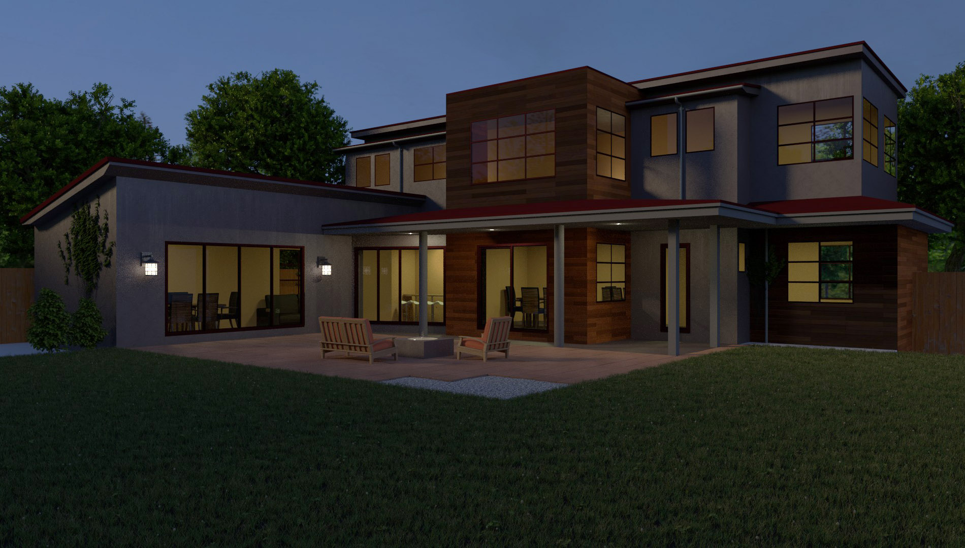 Escena arquitectura exterior blue hour