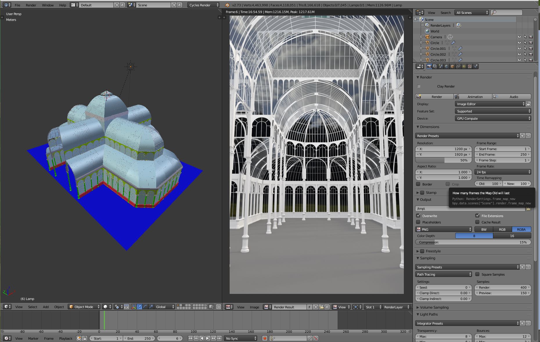 Siguiendo con renders arquitectónicos estoy haciendo una escena interior del palacio de cristal del parque del retiro en Madrid.