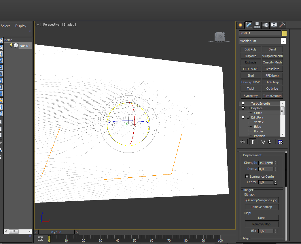 Quiero crear unos rasguños con el modificador displace, pero al añadirlo me crea como a bultos. No es continuo.