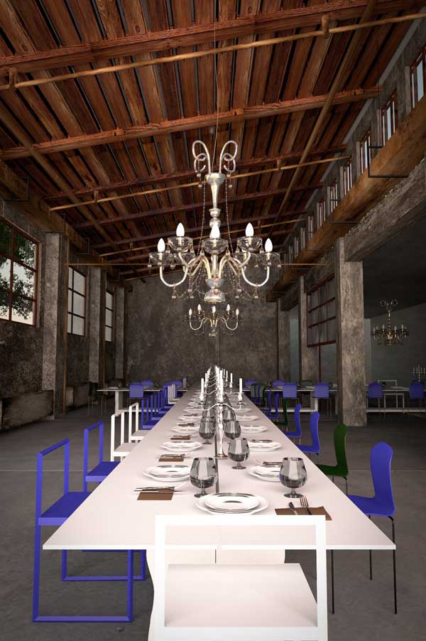 Fue una imagen real que vi de un restaurante en Italia y me animó mucho a recrearlo cambiándole algunas cosas, aún no domino mucho este mundillo, el software, solos aspectos básicos, espero sus impresiones.