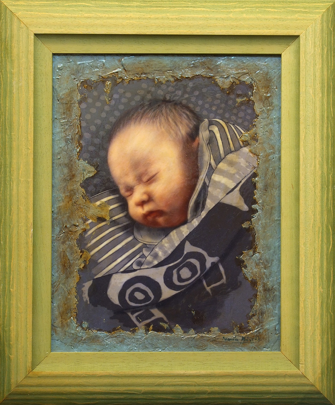 Fue un trabajo muy satisfactorio, jugué a tope con la abejita metiendo capas y capas grosas de barniz e intercalando pintura al mismo tiempo, tiene un cierto volumen que cuando le incide la luz hace cosas raras.